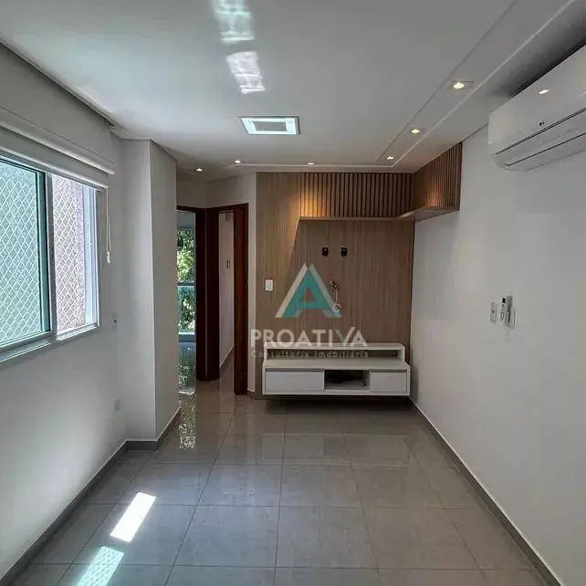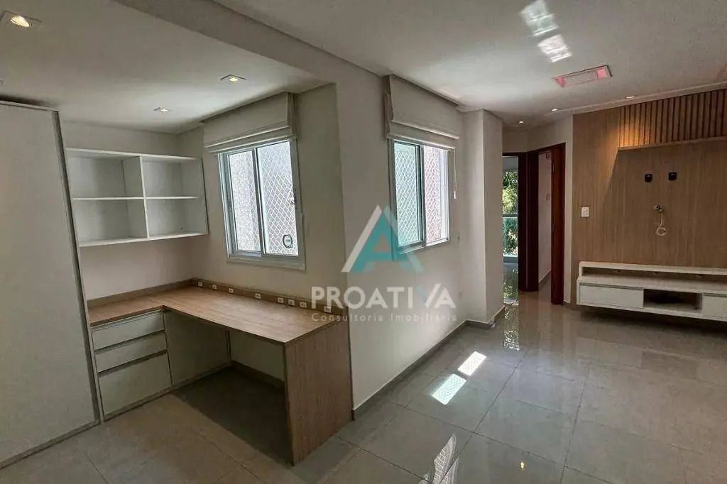 Os dois dormitórios contam com armários planejados e ar-condicionado, oferecendo conforto térmico e organização. Um dos ambientes possui estrutura ideal para home office, atendendo ao perfil de quem precisa trabalhar ou estudar em casa. A sala apresenta atmosfera acolhedora, com painel instalado que valoriza a área de convivência. A cozinha foi equipada com fogão, coifa, armários planejados e mesa, proporcionando praticidade para as atividades diárias. O imóvel ainda dispõe de dois banheiros bem distribuídos e área de serviço independente.