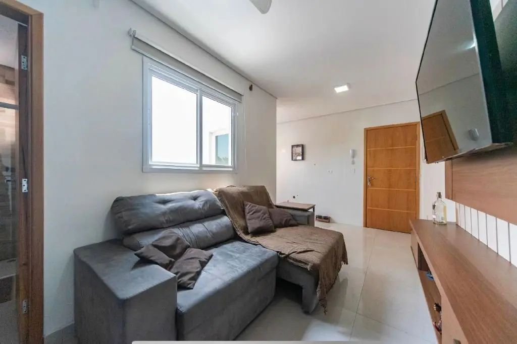 O imóvel conta com 2 dormitórios, banheiro social, sala confortável e acesso interno para a área de cobertura, onde estão a cozinha, área de serviço e um agradável espaço gourmet com churrasqueira e lavabo, proporcionando praticidade e conforto no dia a dia. Possui ainda 1 vaga de garagem.