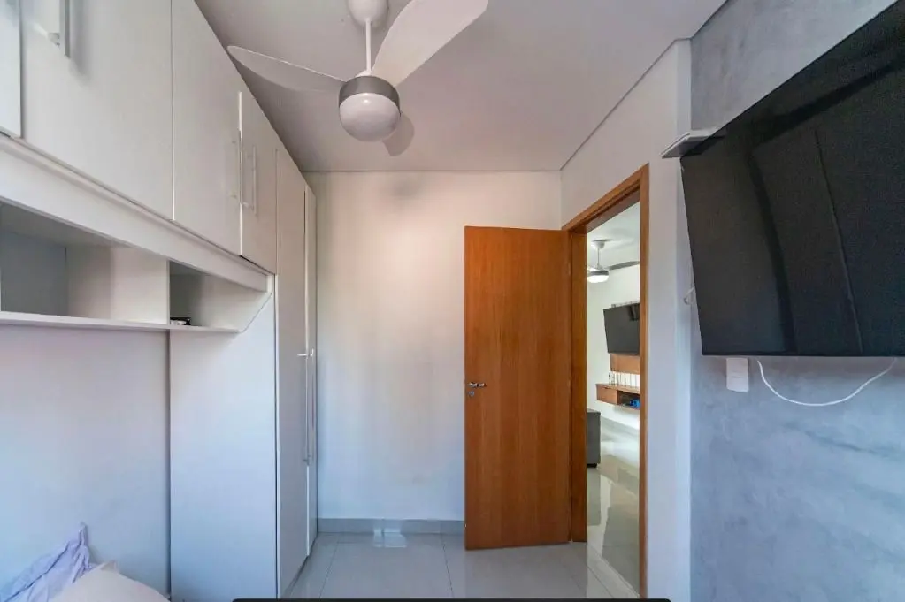 Permanecem no imóvel sofá, painel de TV, guarda-roupas, armários, escrivaninha, móveis planejados e eletrodomésticos, incluindo fogão cooktop e geladeira.