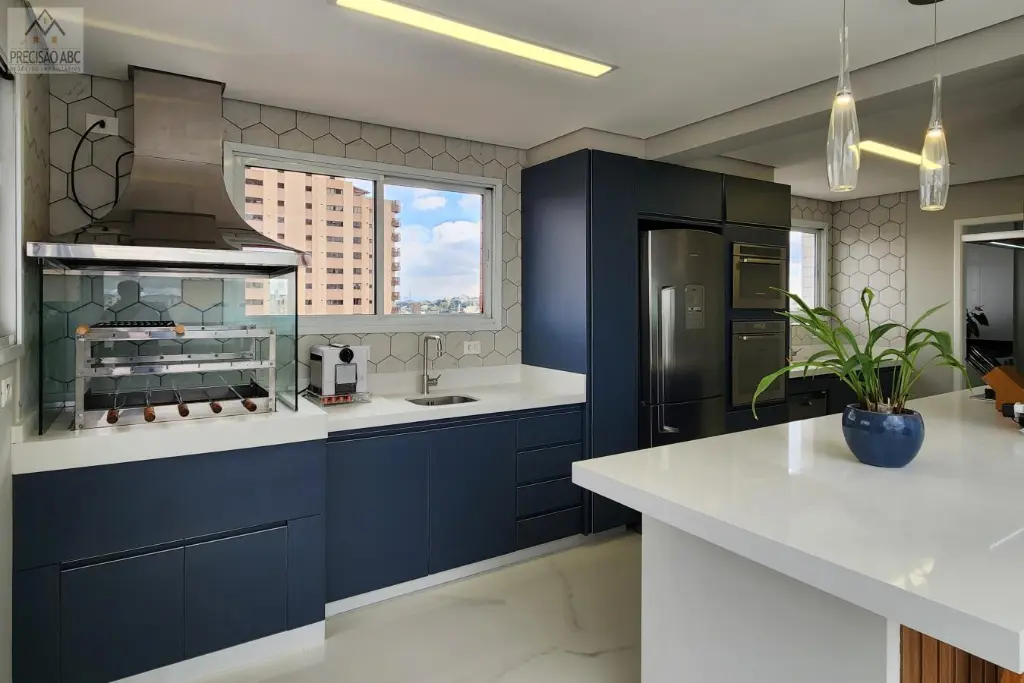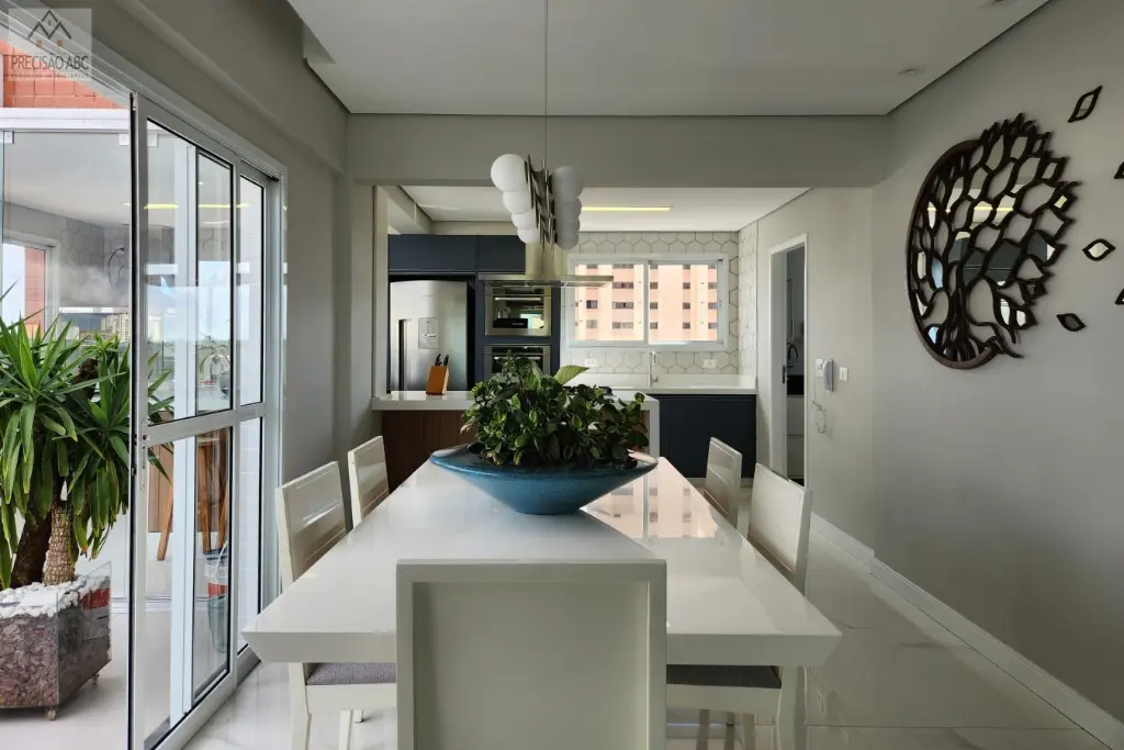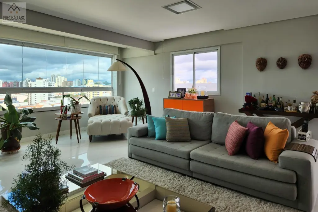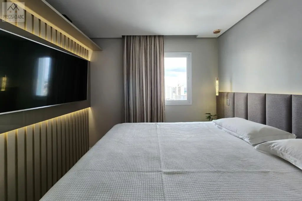 3 dormitórios (3 suítes com ar condicionados), sendo 1 suíte master com closet, banheira de spa e toalheiiro elétrico, 1 suíte para visitas e 1 suíte como escritório, lavabo, sala 2 ambientes ampla, cozinha planejada gourmet com churrasqueira, despensa, banheiros sociais cboxes de vidros, pisos de porcelanato e madeira, área de serviços com quintal, 6 vagas cobertas no estacionamento, 2 unidades por andar, 2 elevadores (social e serviços), portaria das 8h a 20h, circuíto interno e externo com câmeras e cerca elétrica, excelente localização, fácil acesso as Rodovias Anchieta, Imigrantes e as principais vias do ABCDM-SP.
