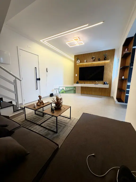 São 2 Dormitórios sendo 1 Suíte; ampla Sala para 2 ambientes com móveis planejados, banheiro social; cozinha com armários planejados; escada interna de acesso ao piso da cobertura;