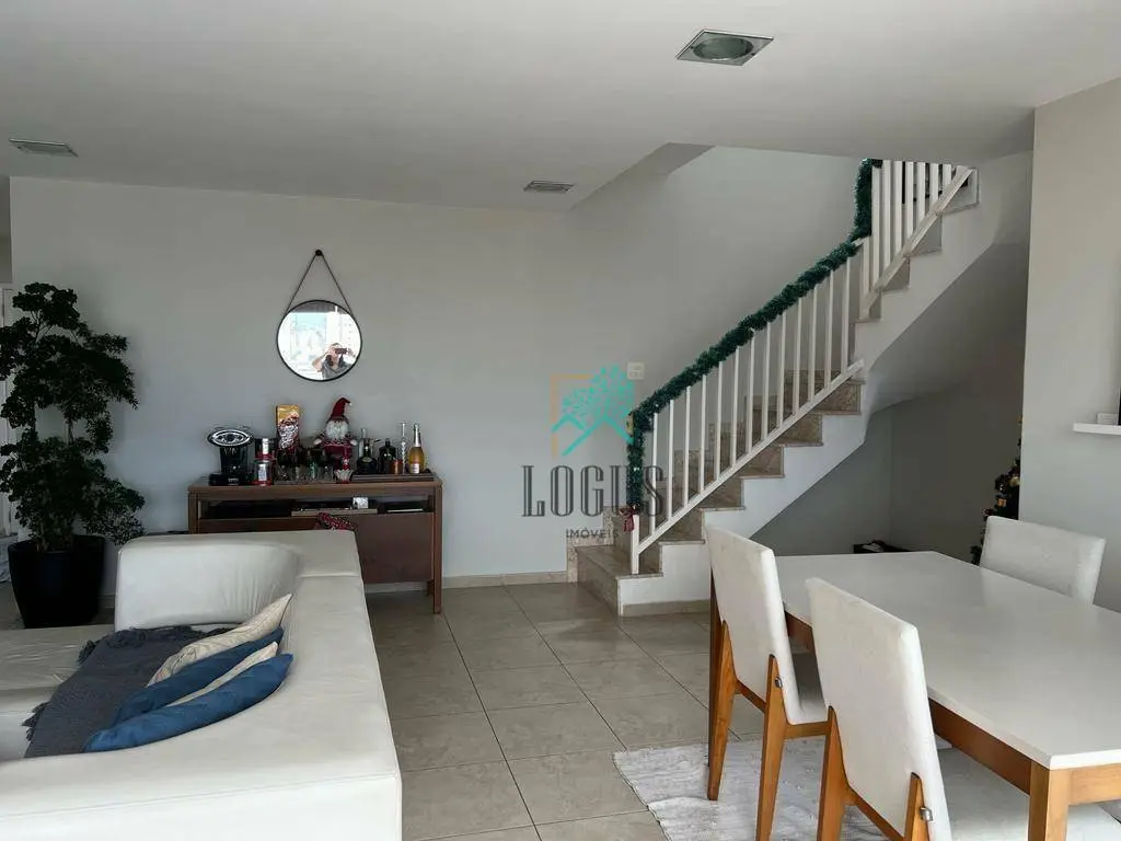 Composta por 3 dormitórios, todos eles suítes e equipados com planejados, sala ampla 2 ambientes, cozinha equipada com armários embutidos, acesso privativo ao espaço gourmet/churrasqueira no pavimento superior, que conta com uma varanda coberta e envidraçada, área de serviço completa, 4wcs e 3 vagas de garagem.