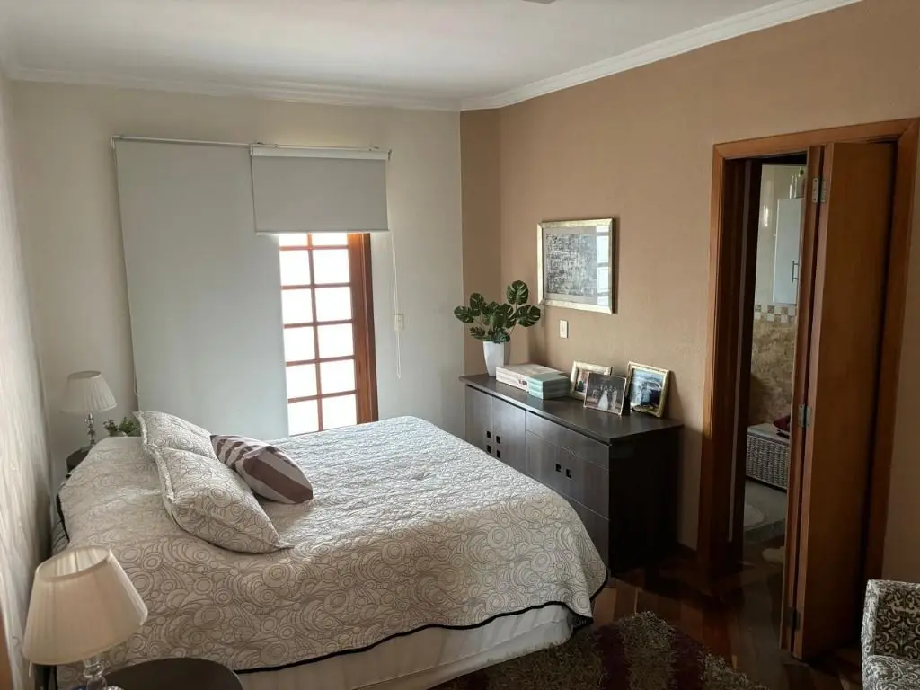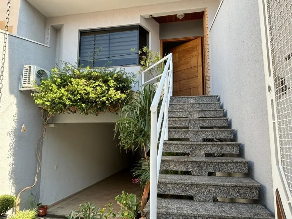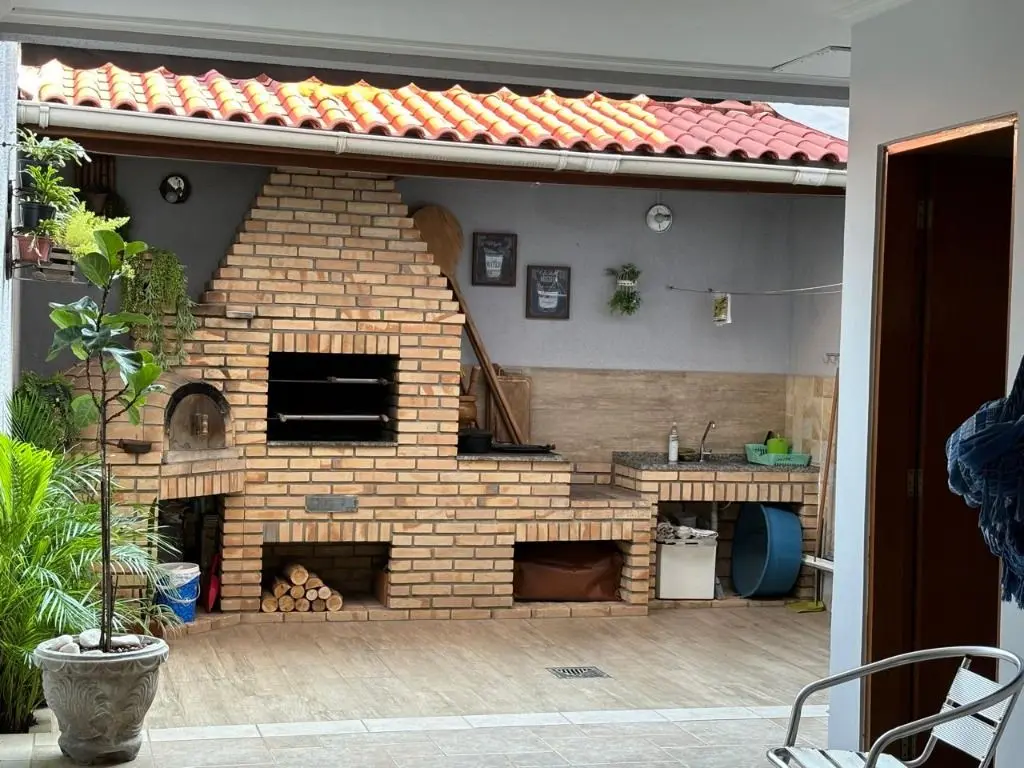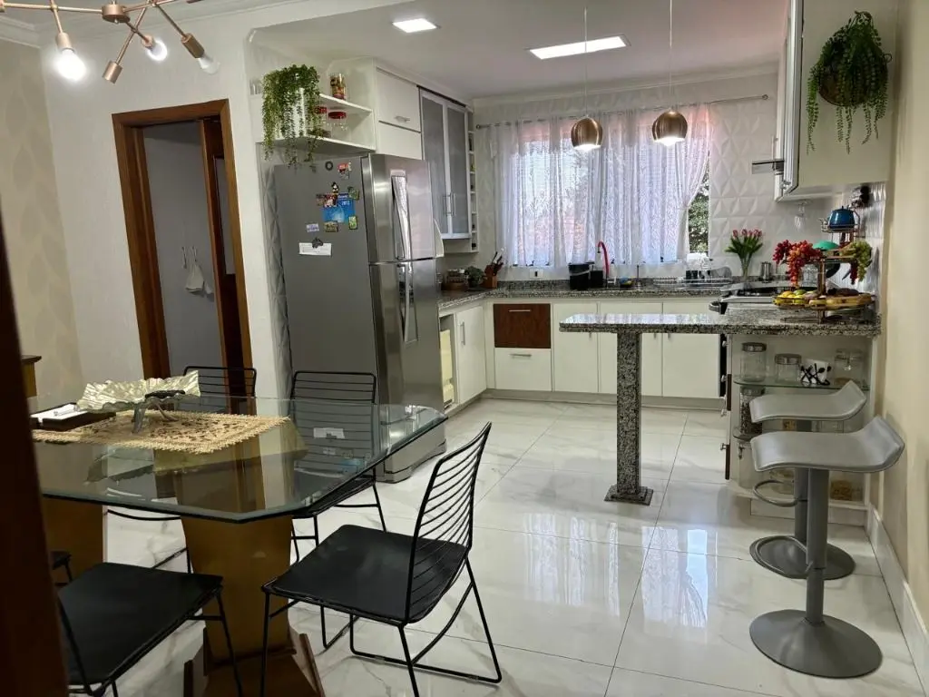 Sala de estar espaçosa com ar condicionado, jardim de inverno com teto retrátil, luz natural e ventilação para a sala e cozinha, copa e cozinha integradas, armários planejados na cozinha e área de serviço, 04 dormitórios sendo 01 suíte máster com hidro e closet, 04 banheiros, quintal com área gourmet completa, churrasqueira, forno de pizza e fogão a lenha. Garagem para 04 carros, com depósito e 01 lavabo.