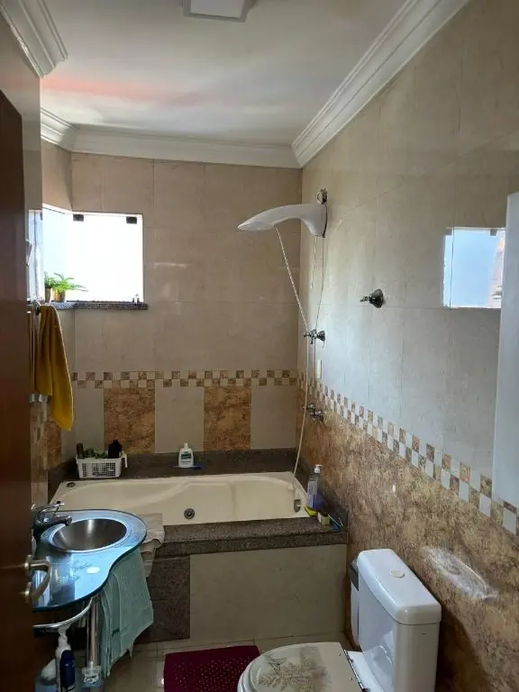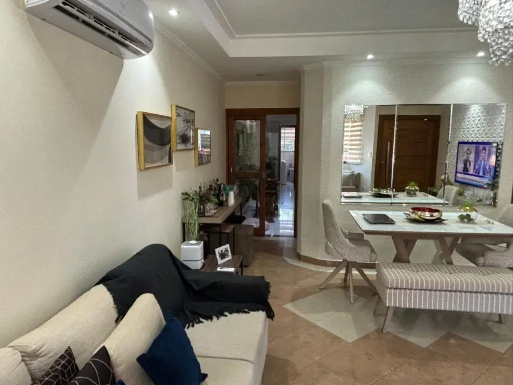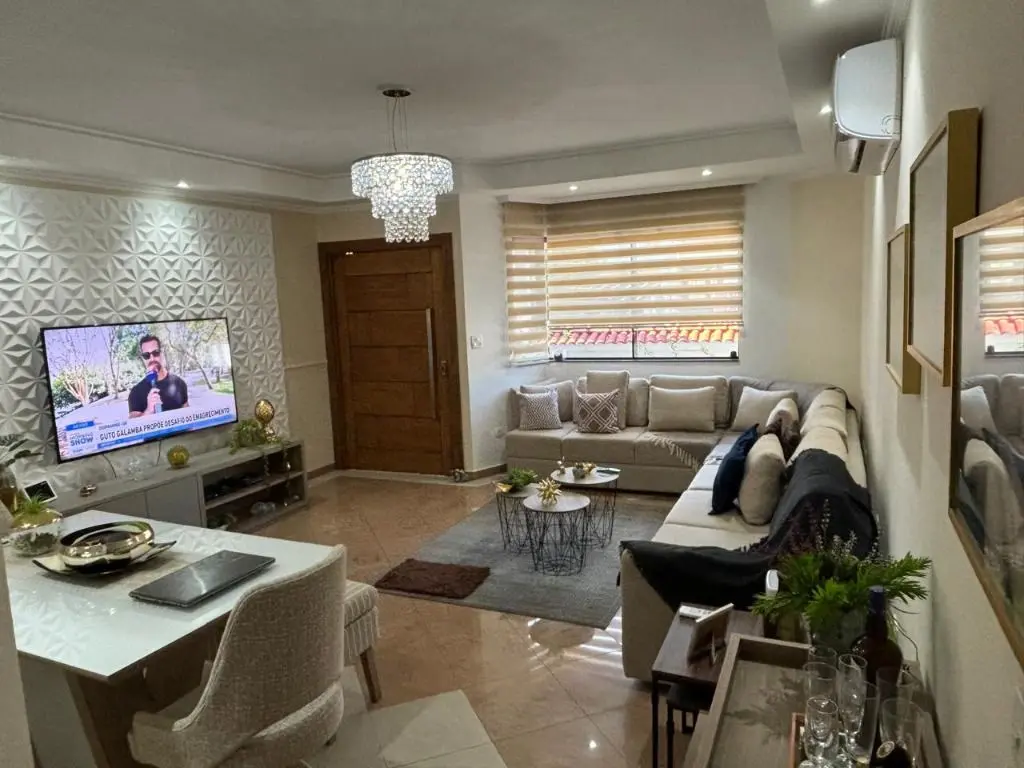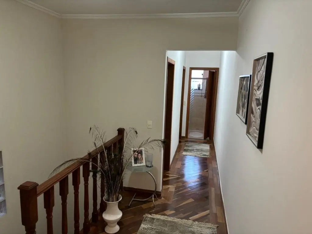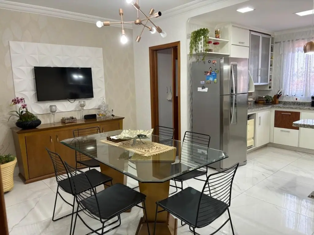 Sala de estar espaçosa com ar condicionado, jardim de inverno com teto retrátil, luz natural e ventilação para a sala e cozinha, copa e cozinha integradas, armários planejados na cozinha e área de serviço, 04 dormitórios sendo 01 suíte máster com hidro e closet, 04 banheiros, quintal com área gourmet completa, churrasqueira, forno de pizza e fogão a lenha. Garagem para 04 carros, com depósito e 01 lavabo.