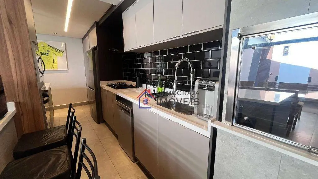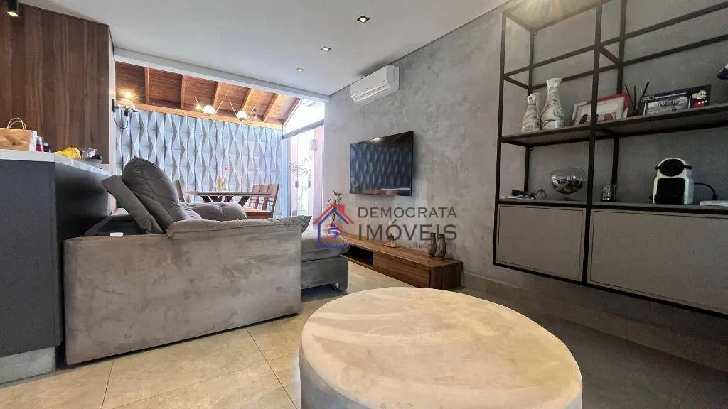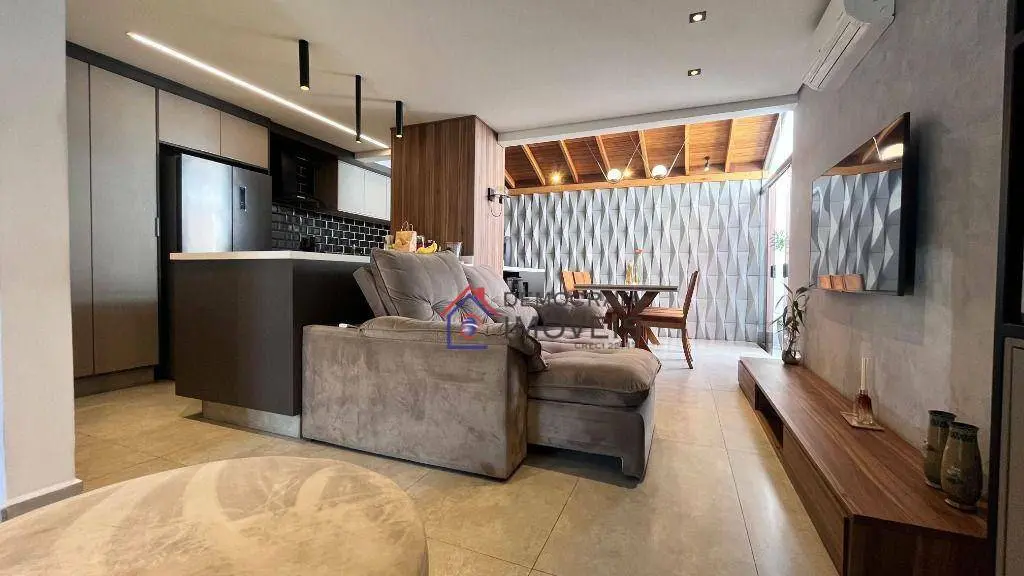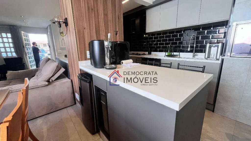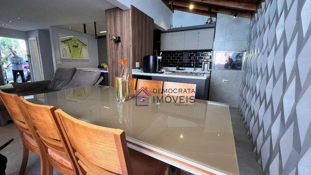 Sobrado totalmente mobiliado em condomínio fechado com 90m² de área útil. Possui 2 dormitórios, ambos suítes, lavabo, sala ampla com 2 ambientes, cozinha integrada, área de serviço externa com quintal e um sótão espaçoso para você usar como quiser! Conta ainda com 2 vagas de garagem.