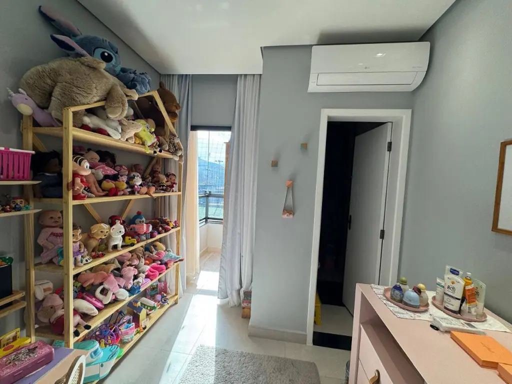 O conforto térmico é garantido em todas as estações, com ar-condicionado instalado nos quartos, na sala e na cozinha. Além disso, o sobrado oferece duas vagas de garagem, área de serviço, quarto de serviço e varanda.
