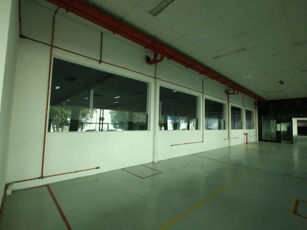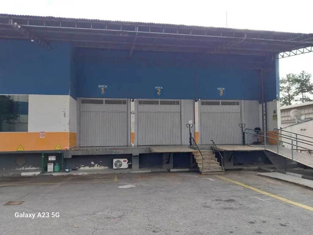Galpão em condomínio fechado, 2149 m², pé direito de 4,30M. 3 docas, sendo 2 com plataforma elevatória. Vestiário e banheiro Masculino e Feminino. 8Vagas. Portaria Blindada com segurança 24 horas, controle de acesso, acesso independente para carretas. Estacionamento externo.