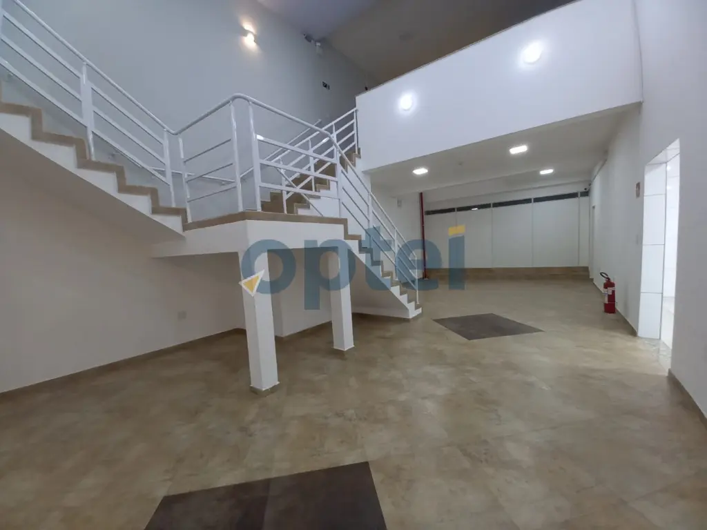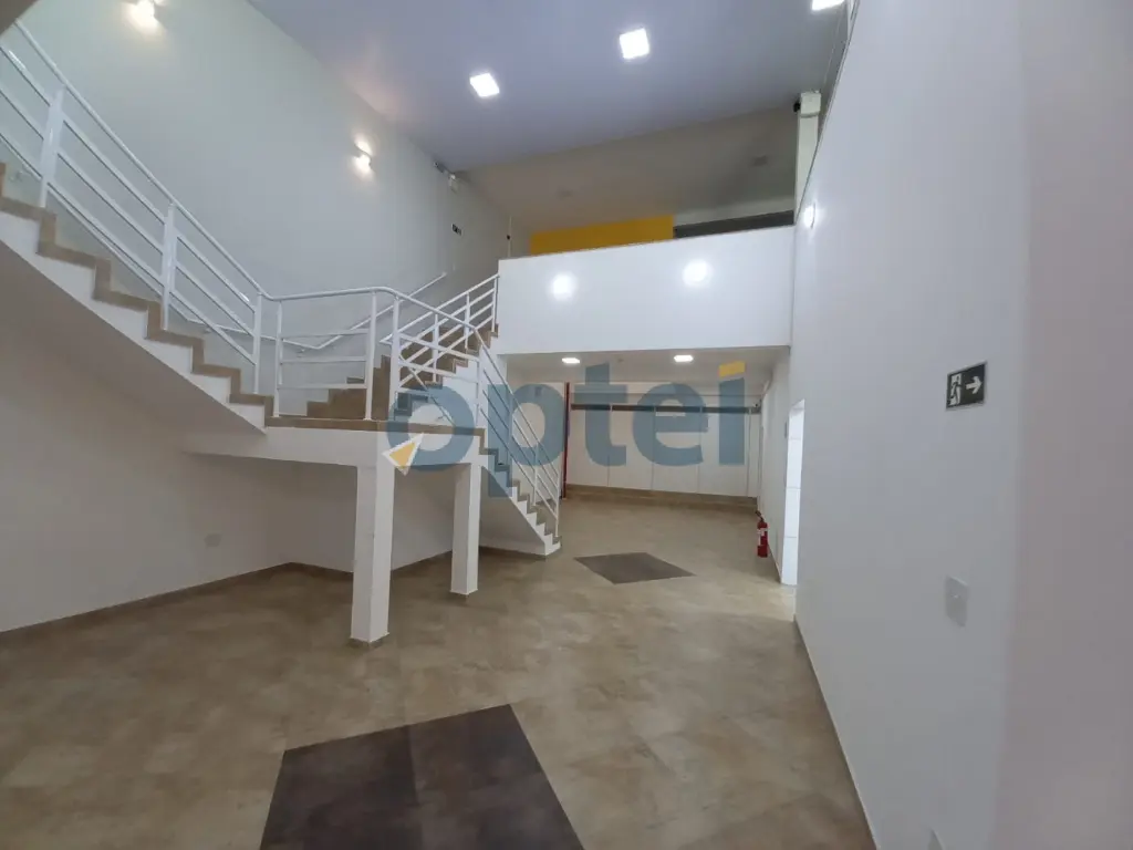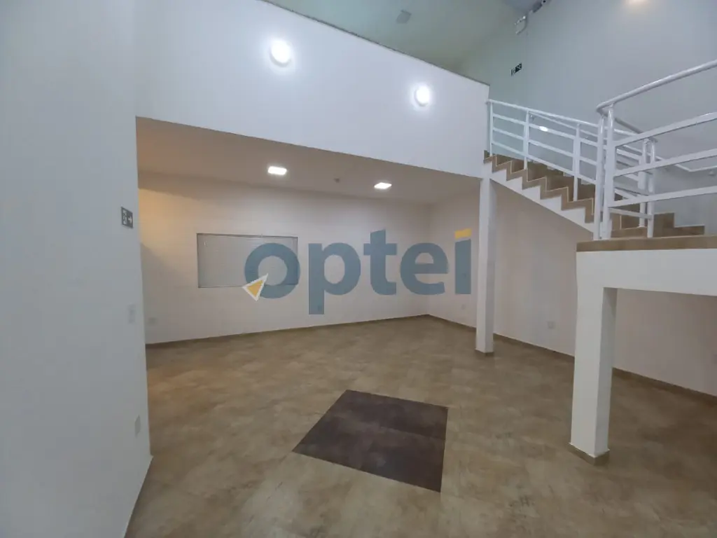 Salão grande na frente que dá acesso ao mezanino.