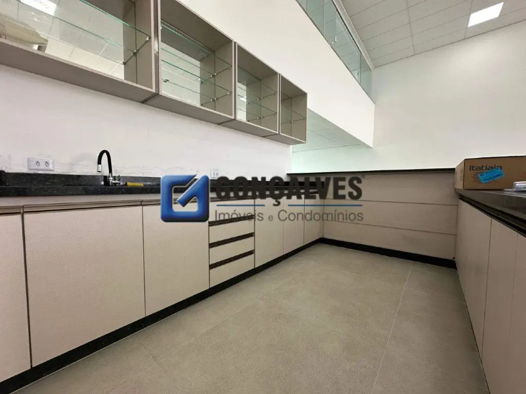 Salão comercial disponível para aluguel em São Bernardo do Campo, no bairro Rudge Ramos. São 410 m² de área interna, 2 banheiros e 3 vagas de garagem. Acabamento em porcelanato, com área de serviço, armário na cozinha e escritório, oferecendo organização e funcionalidade para operações comerciais.