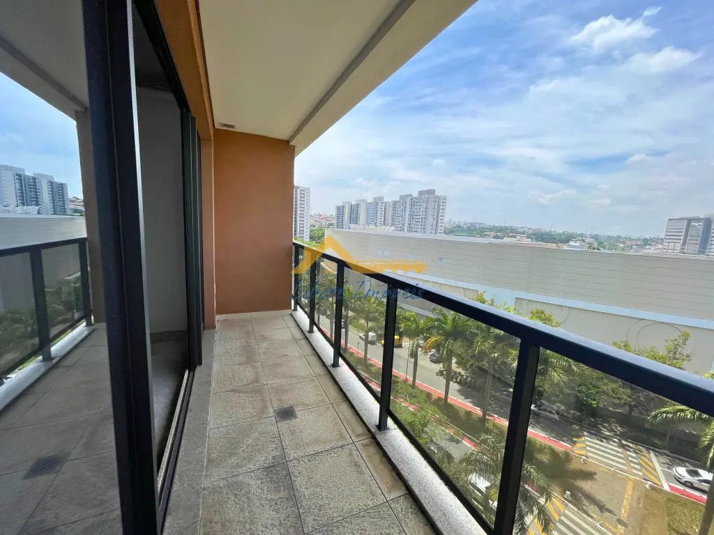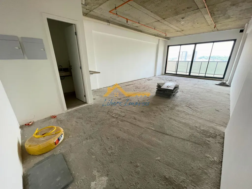 Sala comercial localizada em uma torre empresarial moderna, oferecendo um espaço amplo, versátil e com excelente luminosidade natural. O ambiente conta com uma ampla porta de vidro que dá acesso a uma sacada generosa, proporcionando uma vista aberta e agradável, ideal para tornar o dia a dia mais produtivo e confortável.