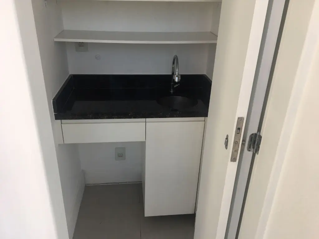 O imóvel conta com recepção com lavabo, sala principal com sacada, banheiro e copa, tudo com acabamento de alto padrão.
