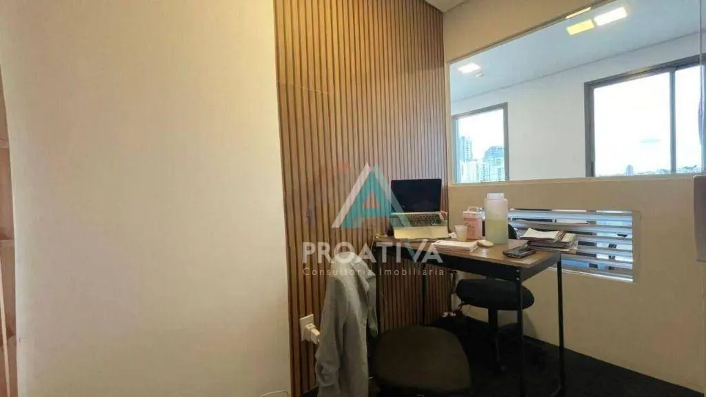 A sala possui 37 m² de área útil, com sacada, proporcionando iluminação natural e vista privilegiada e conta com infraestrutura completa para instalar sua empresa com conforto e praticidade.