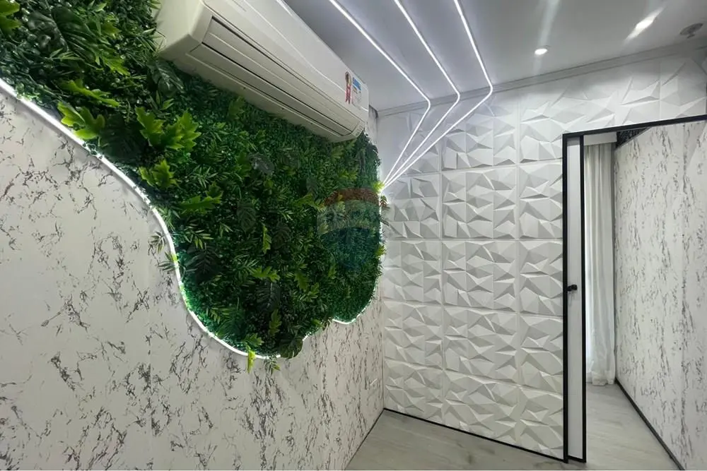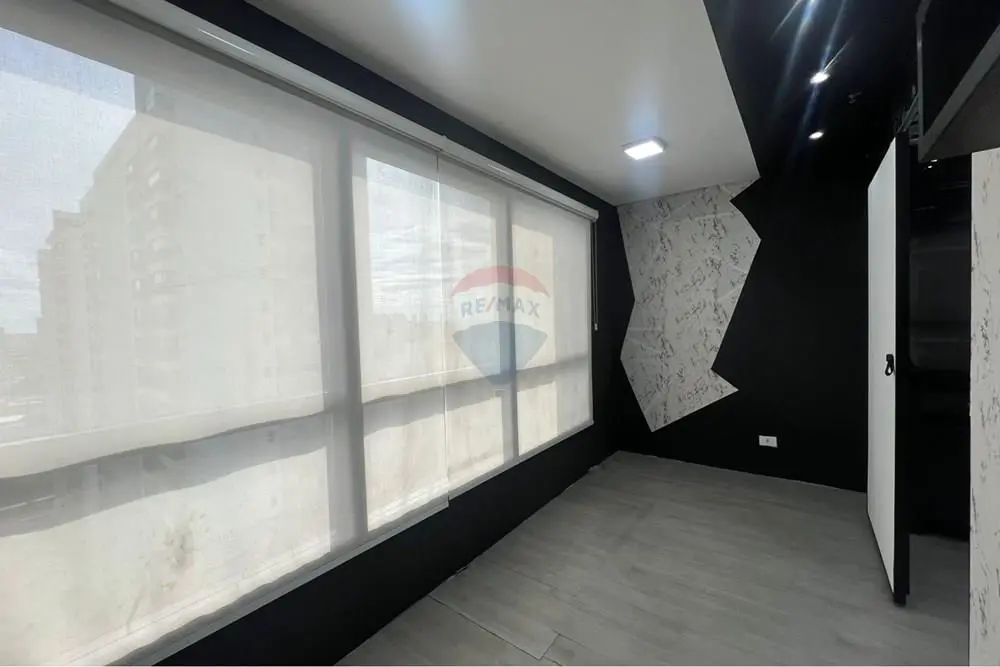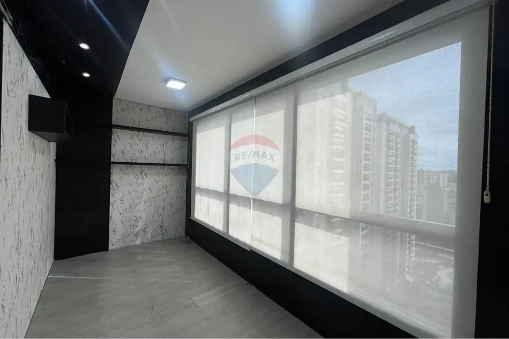 A sala se encontra PRONTA, com recepção, 3 salas individualizadas hoje configuradas em sala com a maca (com vidraça): 4.80 x 2.00, sala carpete (com janela basculante) : 2.30 x 4.00, Escritório (com sacada): 1.80 x 2.00, copa com estrurua completa com pia e armarios, piso laminado, teto rebaixado com projeto de iluminação embutida, sistema de segurança de sprinklers, aparelho de ar condicionado, muito bem arejado com localização privilegiada e com o máximo de aproveitamento de insolação durante boa parte do dia e mais uma bela sacada com vista livre.