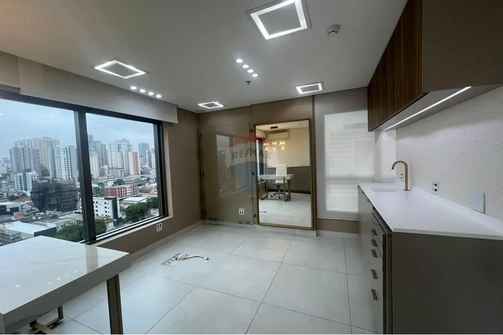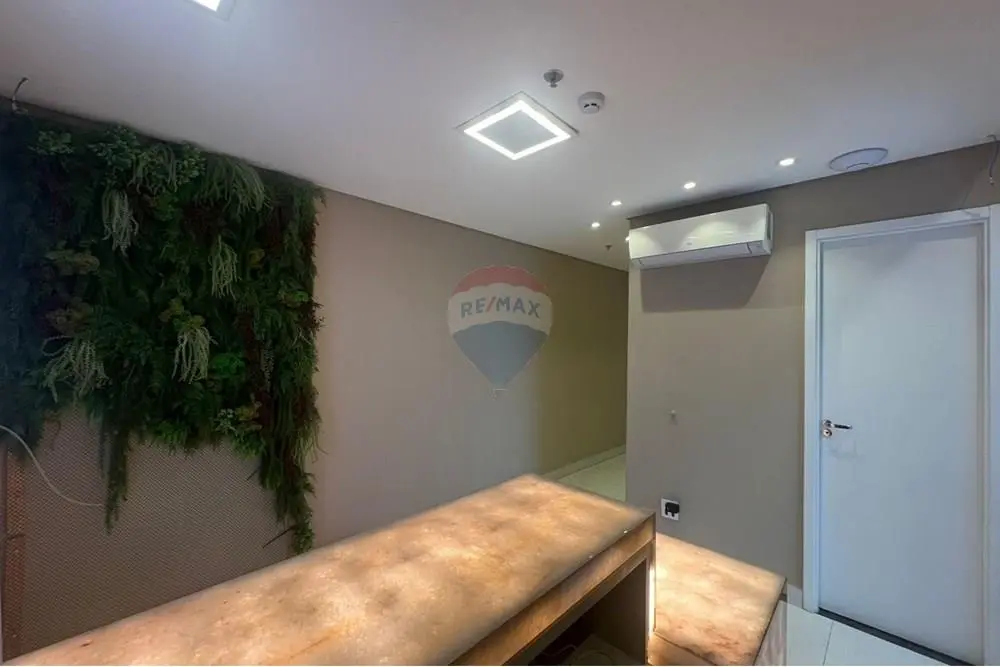 A sala se encontra PRONTA, MOBILIADA, COM SALAS INDIVIDUALIZADAS, recepção com bancada, aparelho de ar condionado, lavabo, sala de atendimento, com estrutura completa de pai, bancada, armarios planejados armarios, aparelho de ar condionado, piso laminado, teto rebaixado com projeto de iluminação embutida, sistema de segurança de sprinklers, um aparelho de ar condicionado, copa com microondas e frigobar, muito bem arejado com localização privilegiada e com o máximo de aproveitamento de insolação durante boa parte do dia e mais uma bela sacada com vista livre.