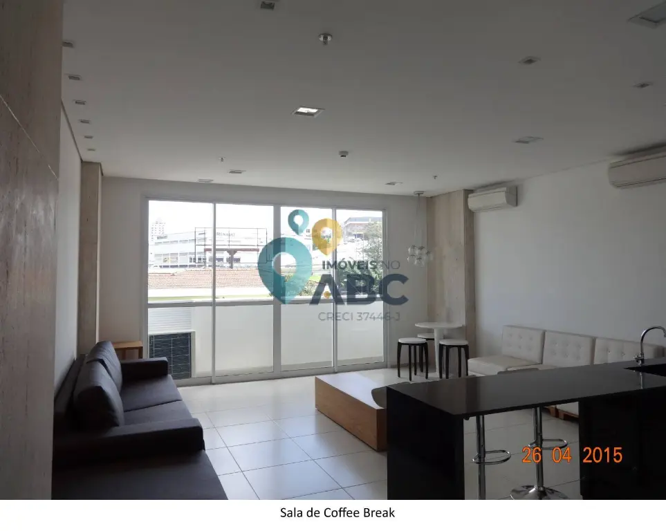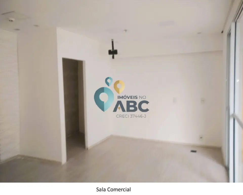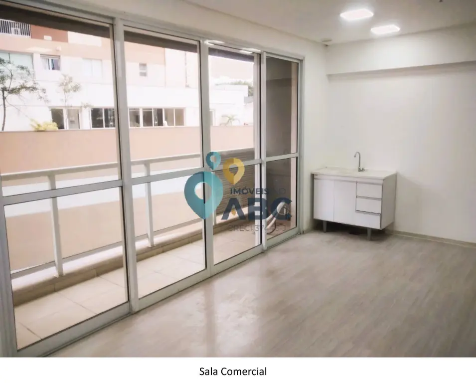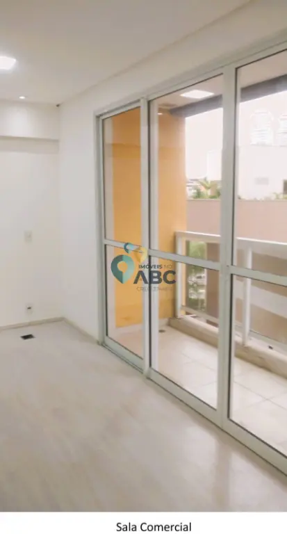 Sala Comercial com varanda, mini cozinha, banheiro privativo, e uma vaga de garagem exclusiva, infra estrutura para ar condicionado na sala, acabamento em piso elevado, forro de gesso e iluminação, possui ligação de água e energia elétrica, 43 m² de área útil, ao lado da saída 21 da Via Anchieta.
