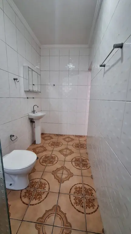 Casa no primeiro andar de um sobrado com mais uma casa, com dois dormitórios sendo duas suítes, sala, cozinha, lavanderia, varanda, uma vaga de garagem com portão automático.