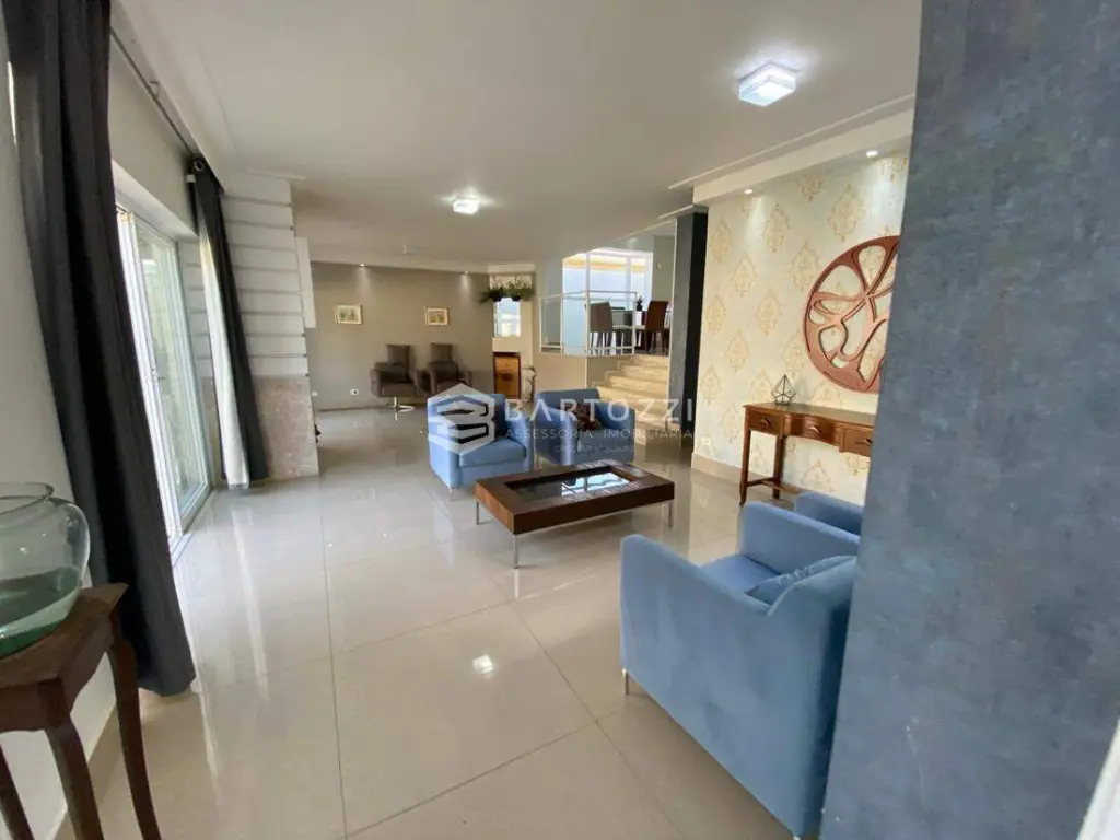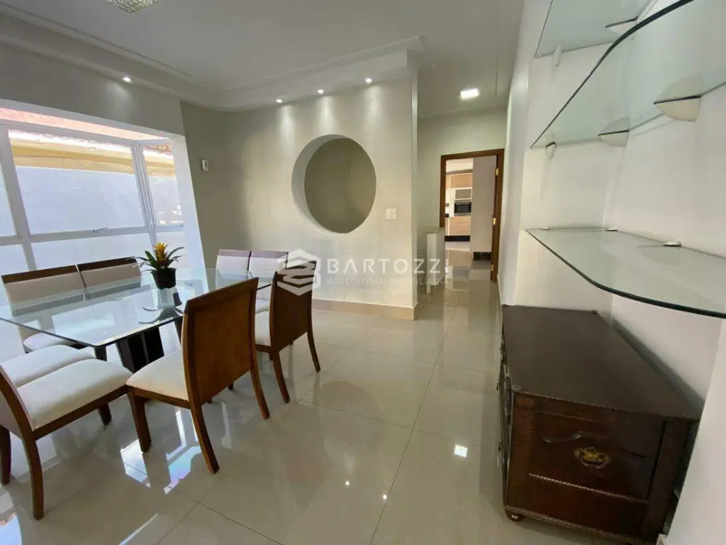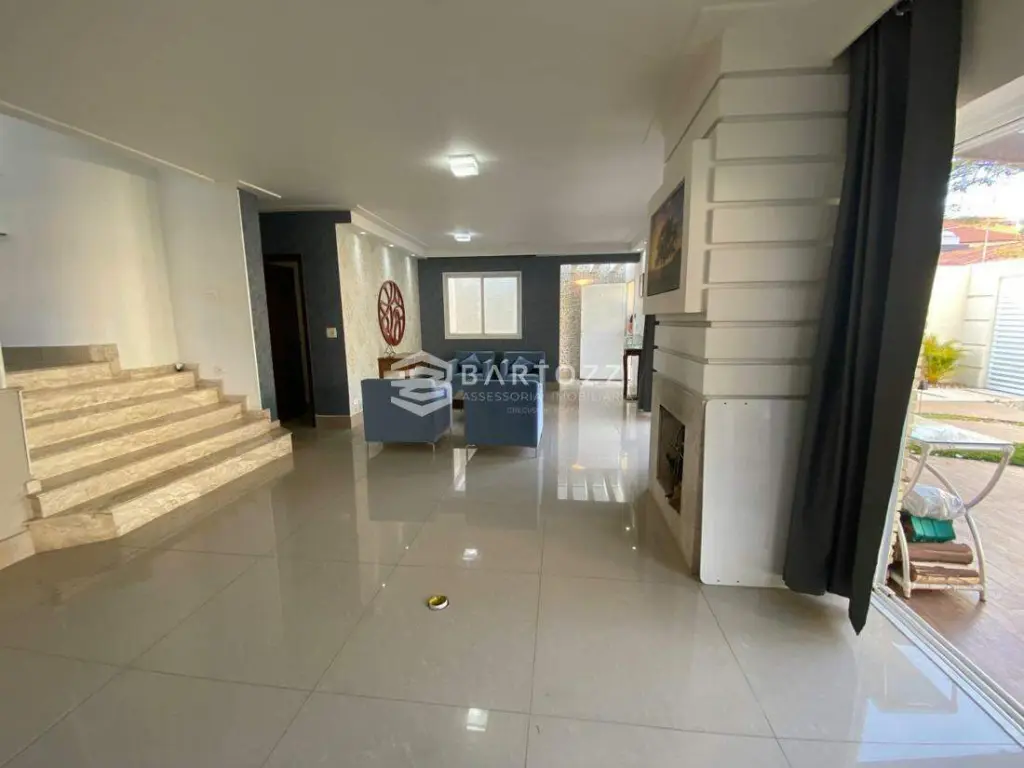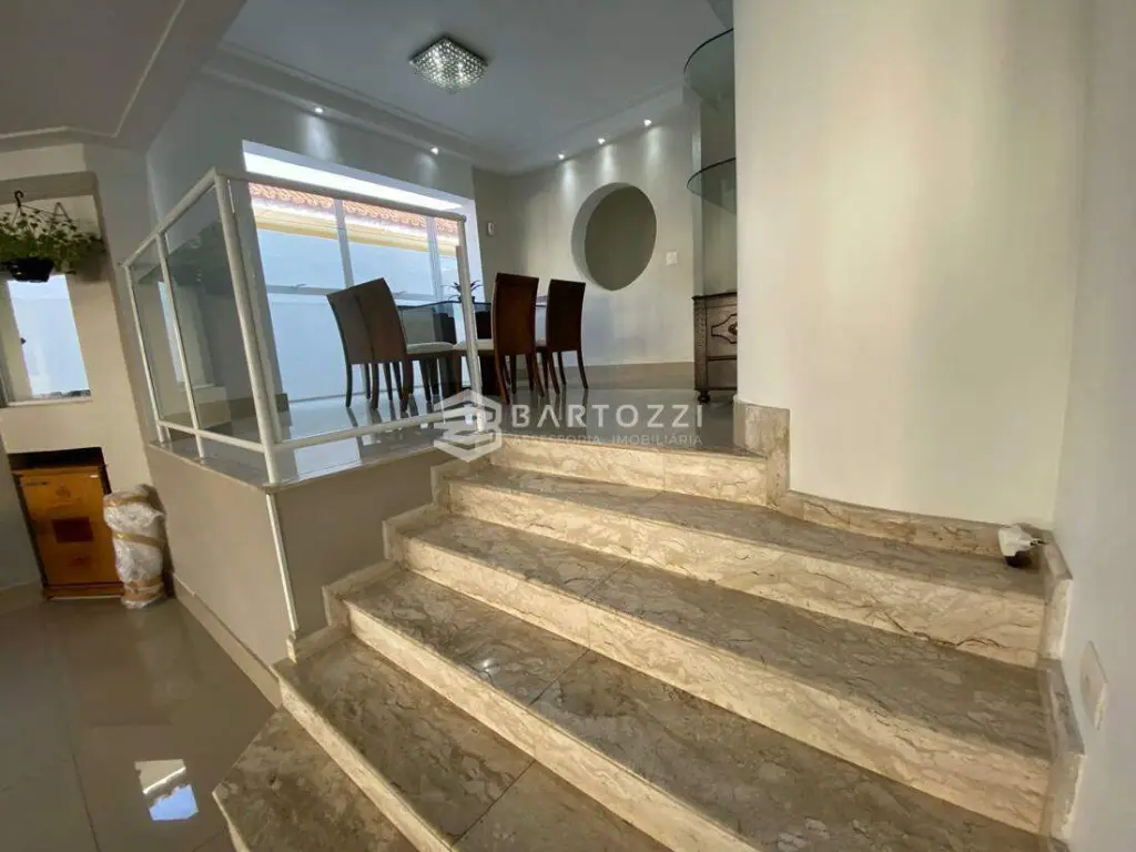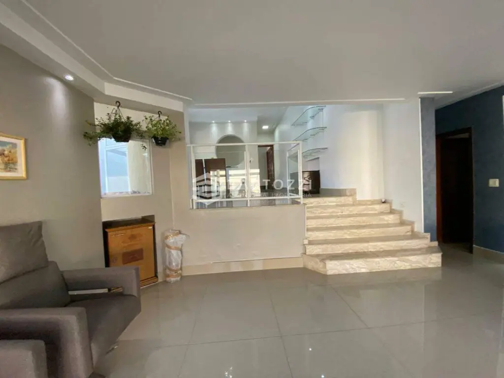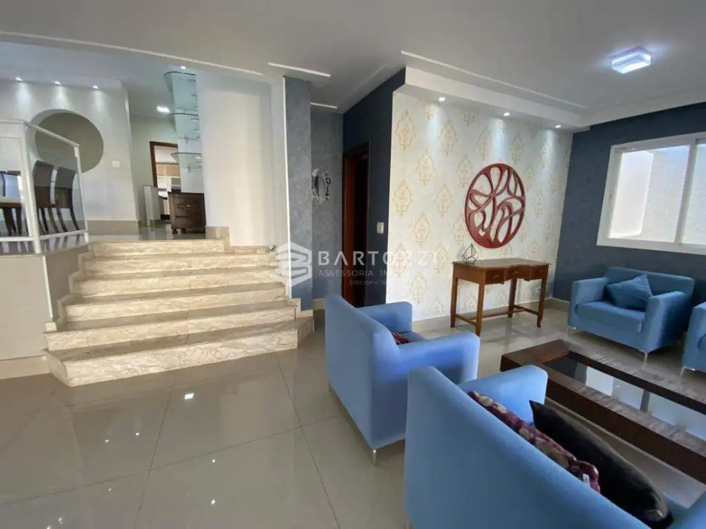 ANDAR INFERIOR: sala TV, adega, escritório, cozinha planejada com churrasqueira, wc social, área de serviço, despensa, quintal, depósito, jardim e 4 vagas.
