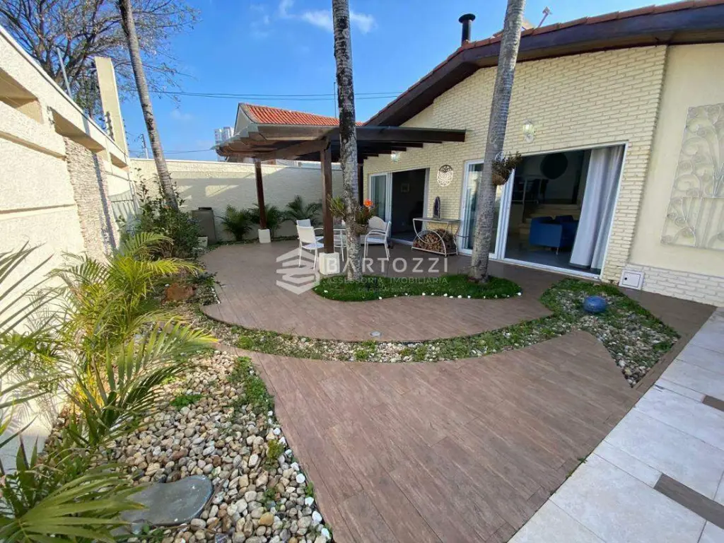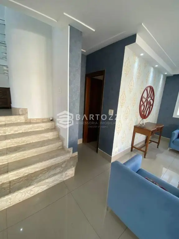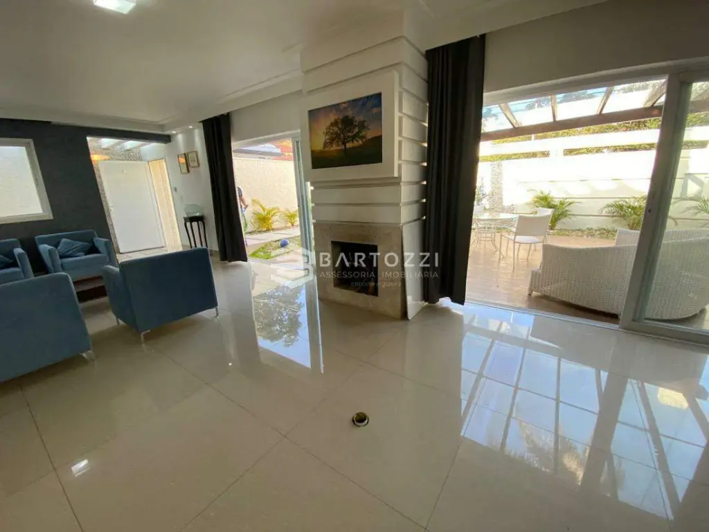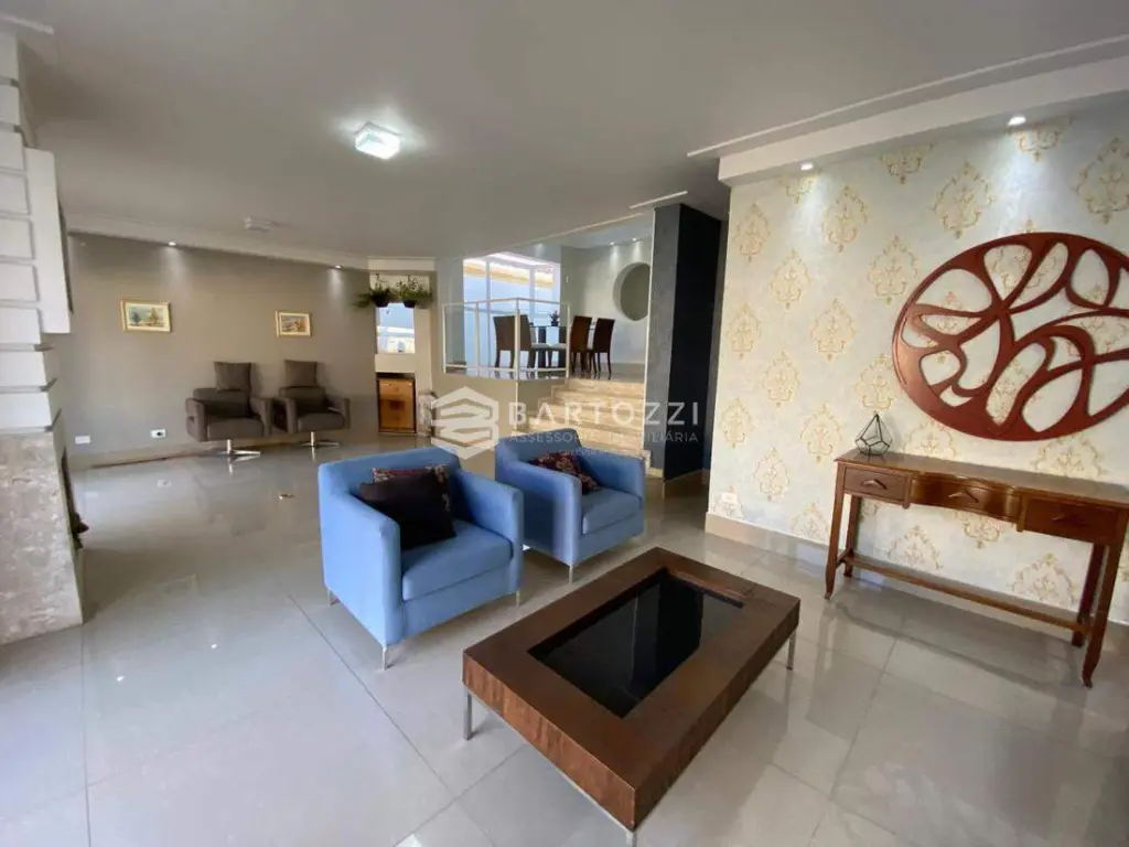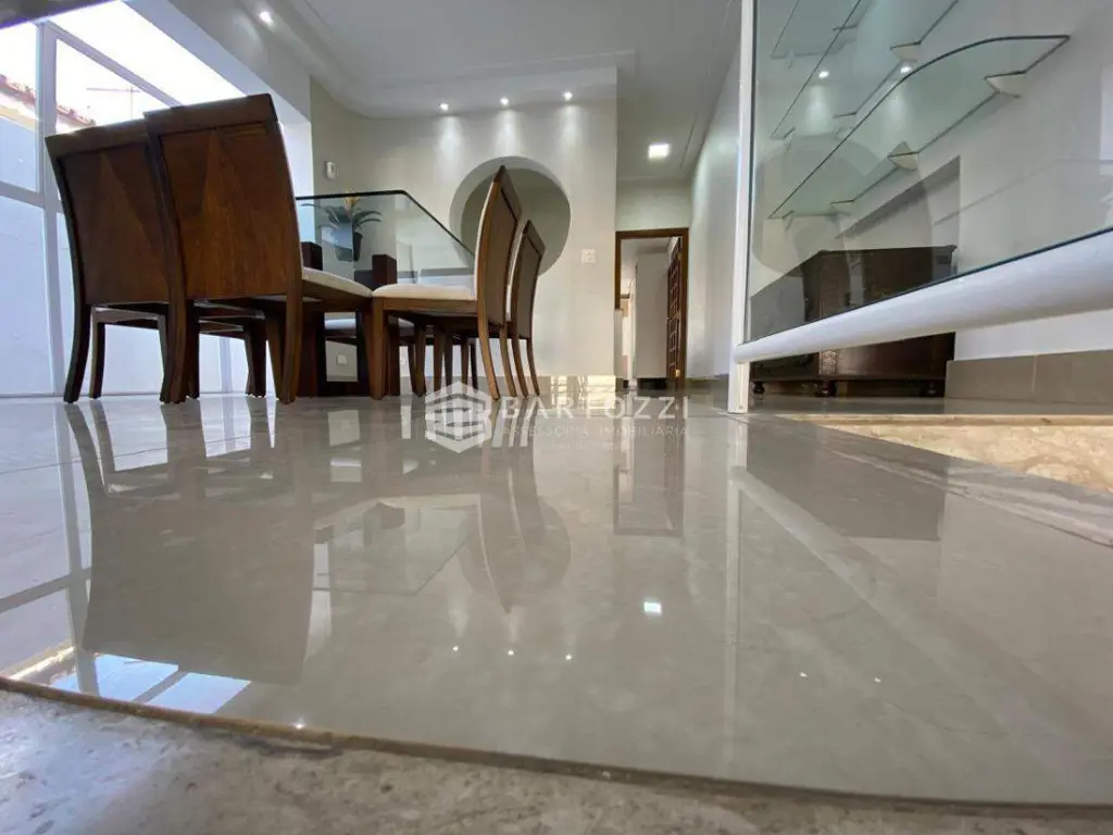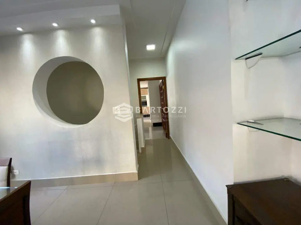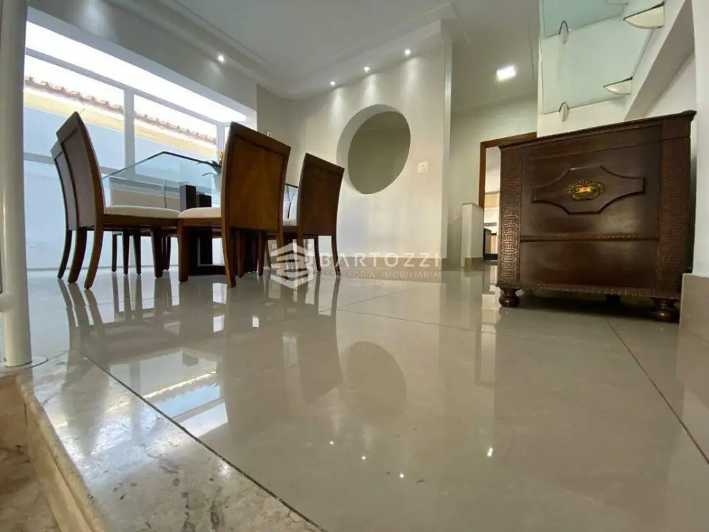 ANDAR INFERIOR: sala TV, adega, escritório, cozinha planejada com churrasqueira, wc social, área de serviço, despensa, quintal, depósito, jardim e 4 vagas.