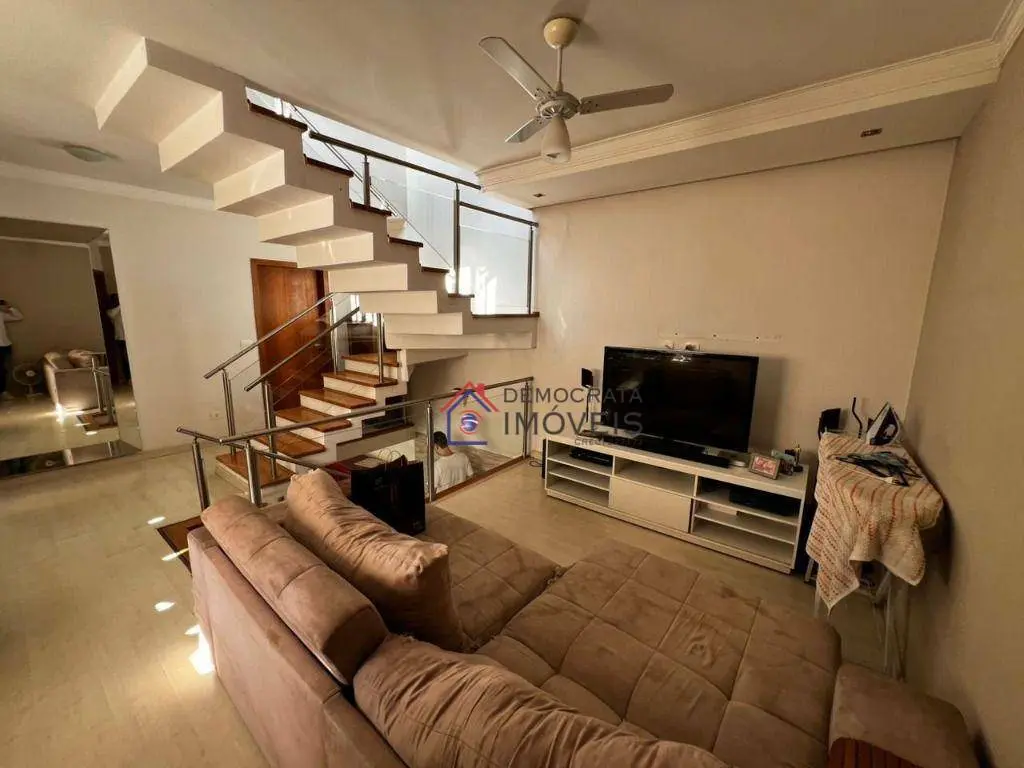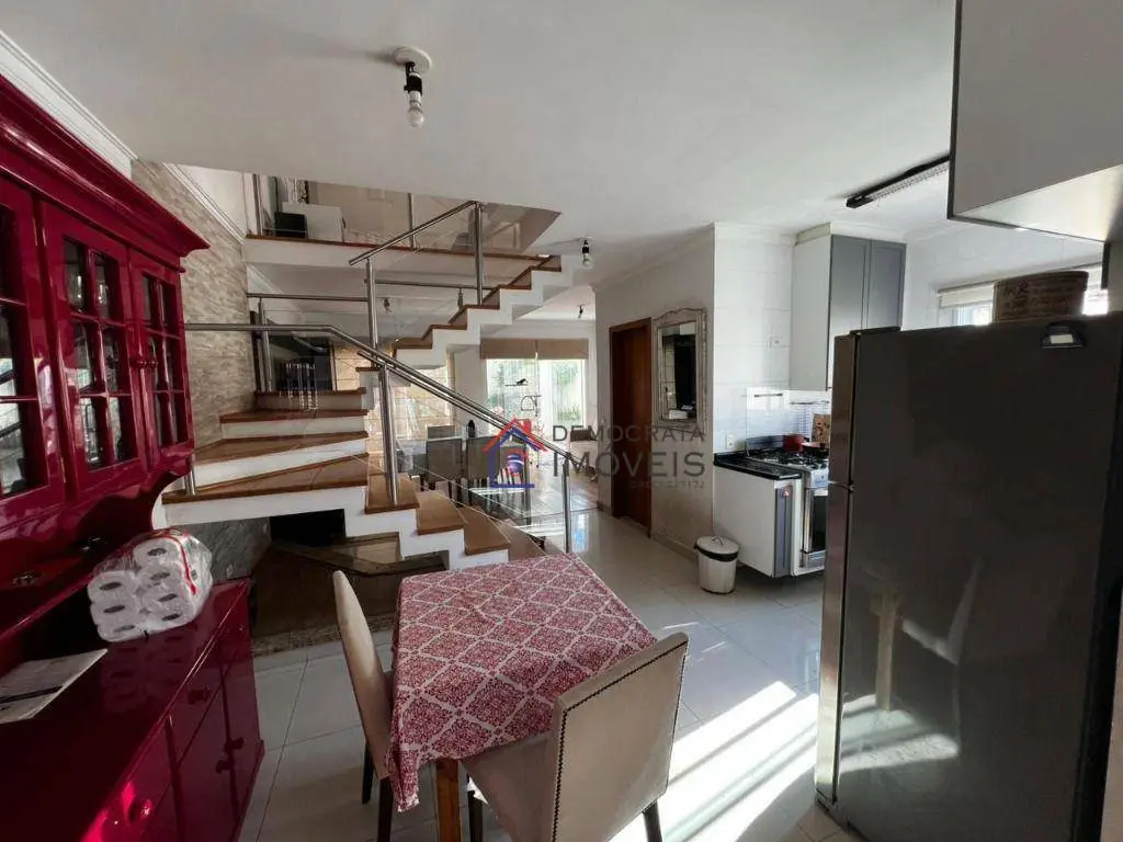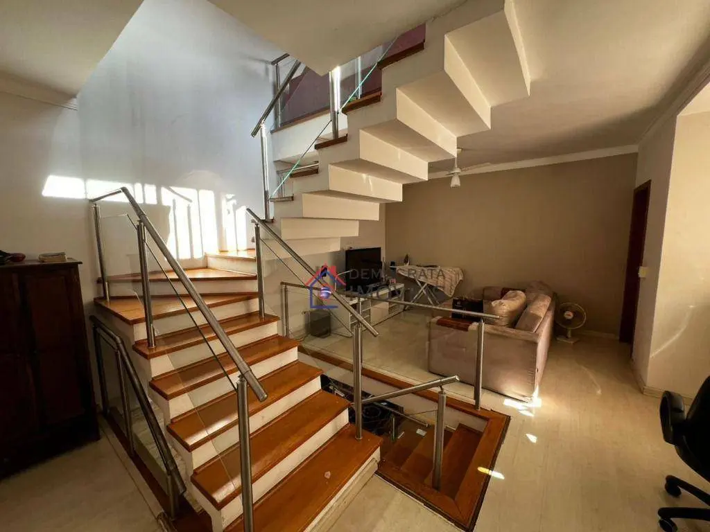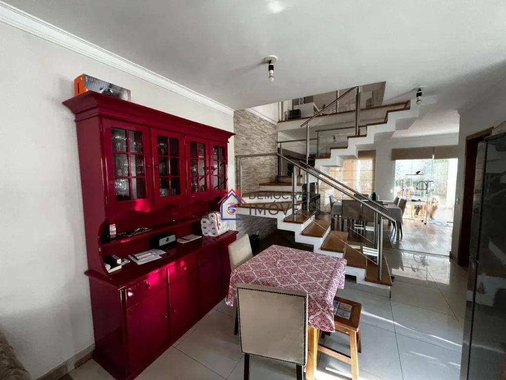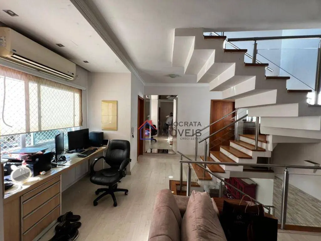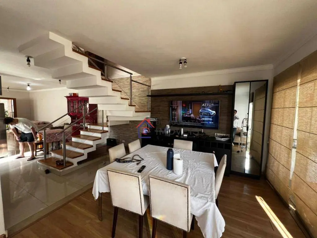 Sobrado semi-mobiliado, possui 280 m² de área construída distribuídos em três pavimentos. No térreo, dispõe de sala de estar, sala de jantar, cozinha, área de serviço, banheiro de serviço, churrasqueira e quintal. No primeiro andar, conta com sala de TV e três suítes, sendo a suíte master equipada com closet, sacada e hidromassagem. Já no segundo andar, há um escritório, amplo sótão e varanda.