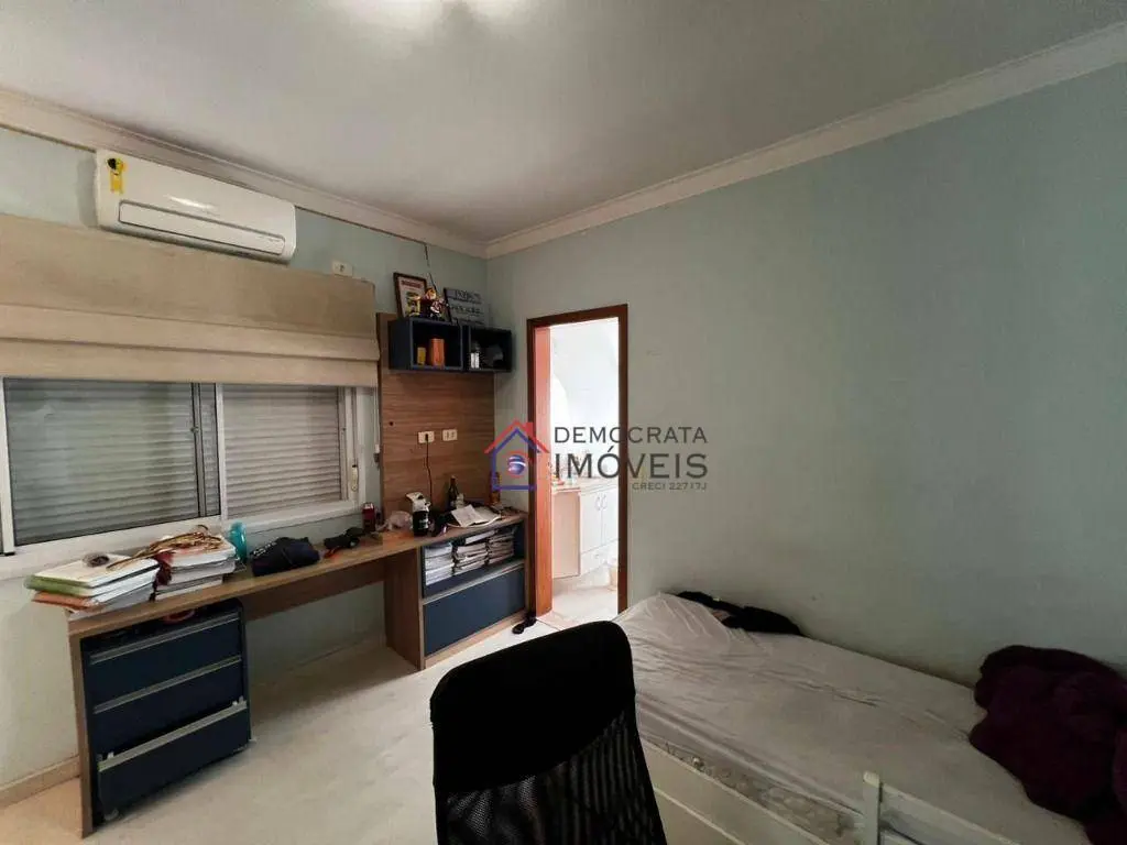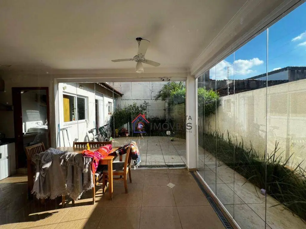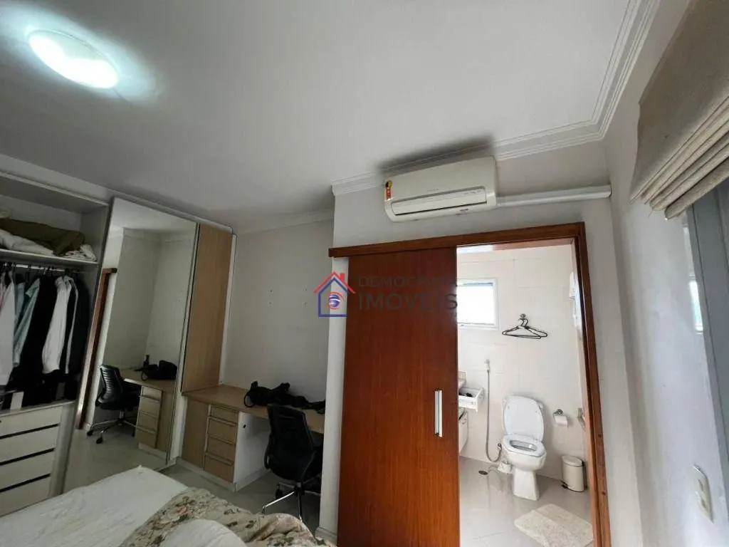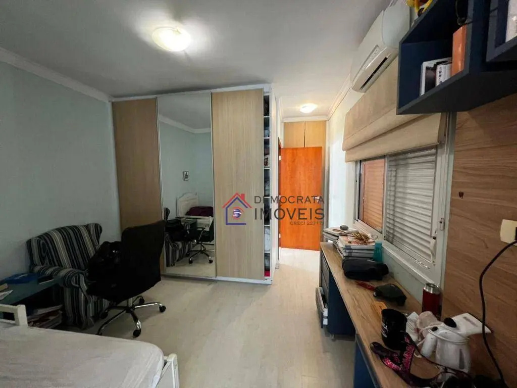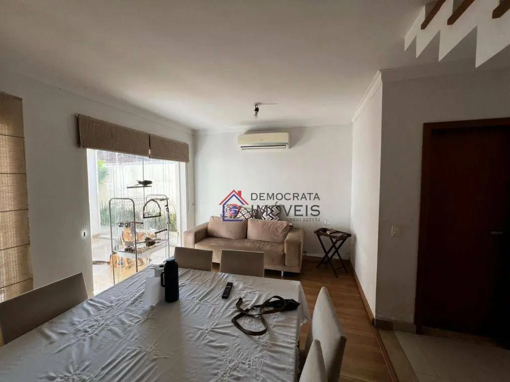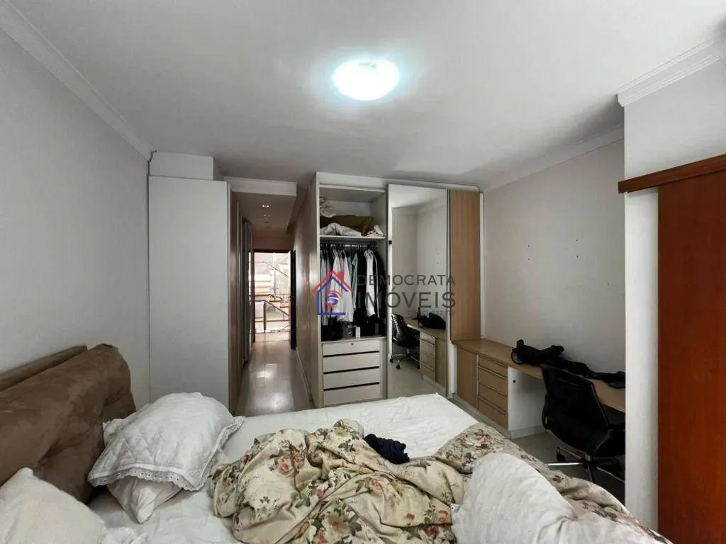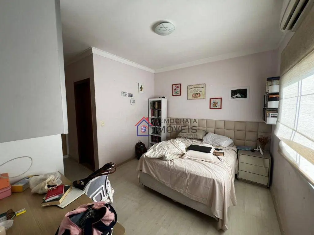 Sobrado semi-mobiliado, possui 280 m² de área construída distribuídos em três pavimentos. No térreo, dispõe de sala de estar, sala de jantar, cozinha, área de serviço, banheiro de serviço, churrasqueira e quintal. No primeiro andar, conta com sala de TV e três suítes, sendo a suíte master equipada com closet, sacada e hidromassagem. Já no segundo andar, há um escritório, amplo sótão e varanda.