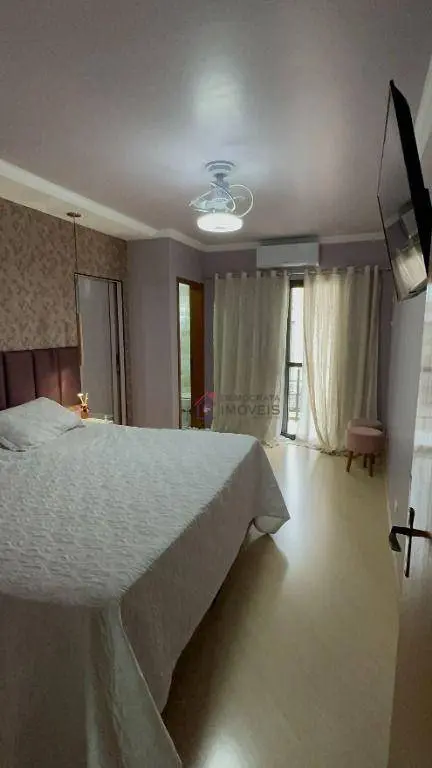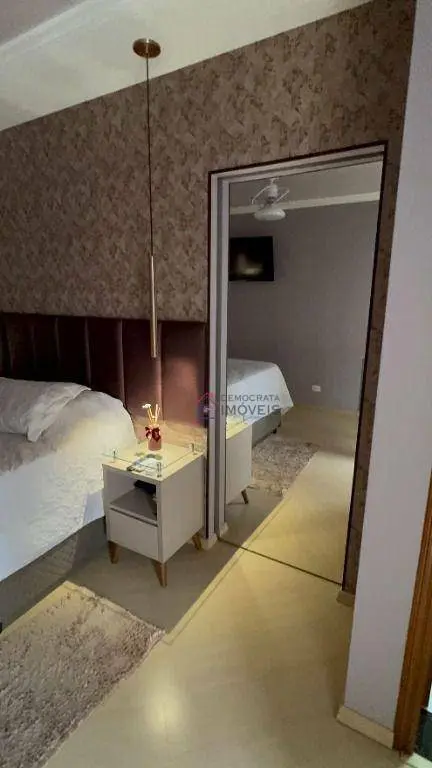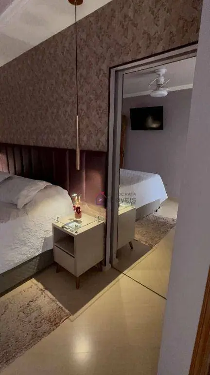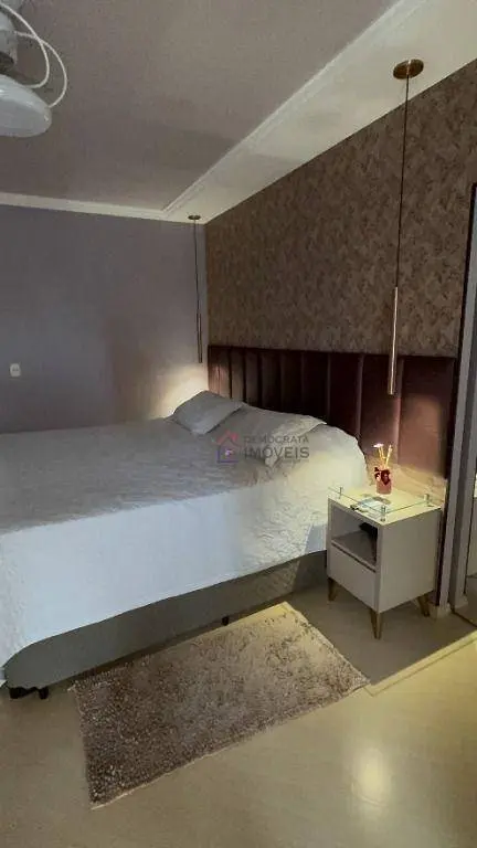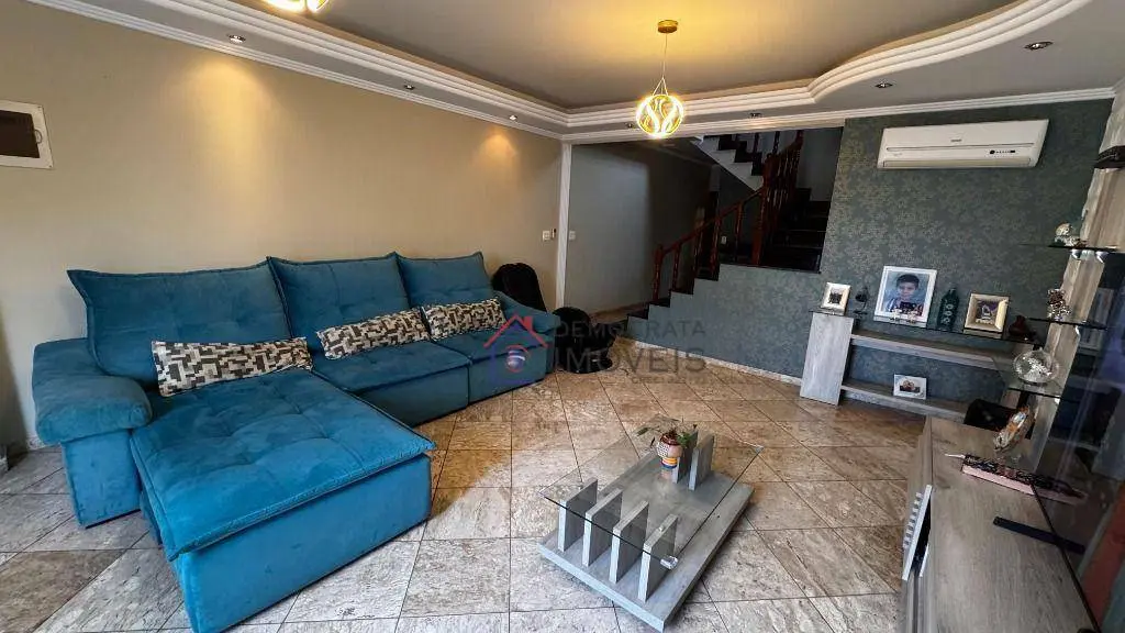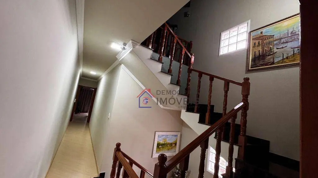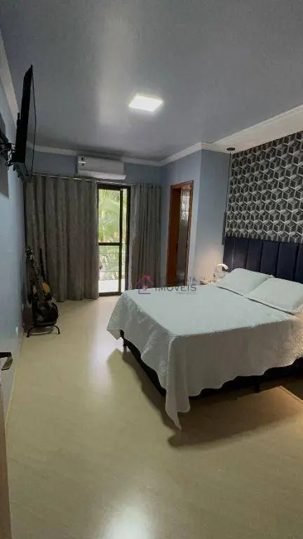 Possui 3 suítes amplas, sendo 2 equipadas com ar condicionado e closet recém implantados, 5 banheiros ao total, sala de estar com ar condicionado, sala de jantar e cozinha integradas, área de serviço, sótão com academia e sala de jogos, quintal com churrasqueira e garagem para 4 carros.
