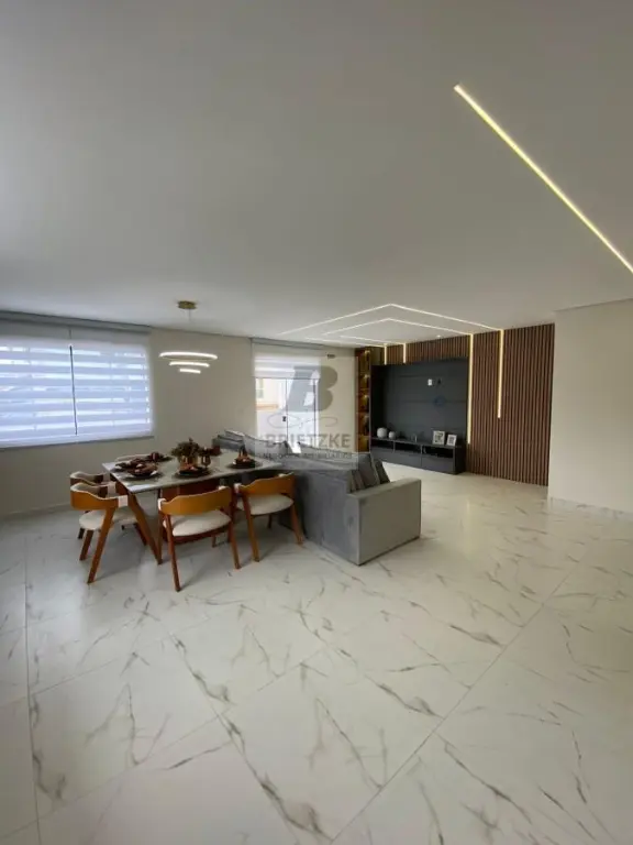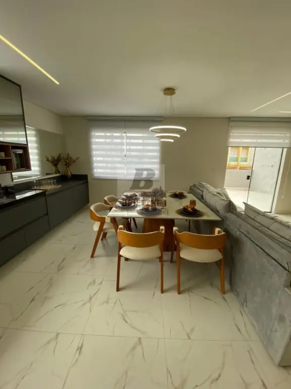 A cozinha em conceito aberto traz porcelanato de alta qualidade e móveis planejados assegurando praticidade e para o dia a dia. O sobrado oferece ainda três banheiros completos com box em vidro temperado nas suítes, lavabo social e área de serviço fechada. Com oito vagas de garagem, portão eletrônico, fechadura biométrica, e sistema de gás canalizado, este imóvel foi projetado para atender famílias exigentes que buscam amplitude, tecnologia e bom gosto.