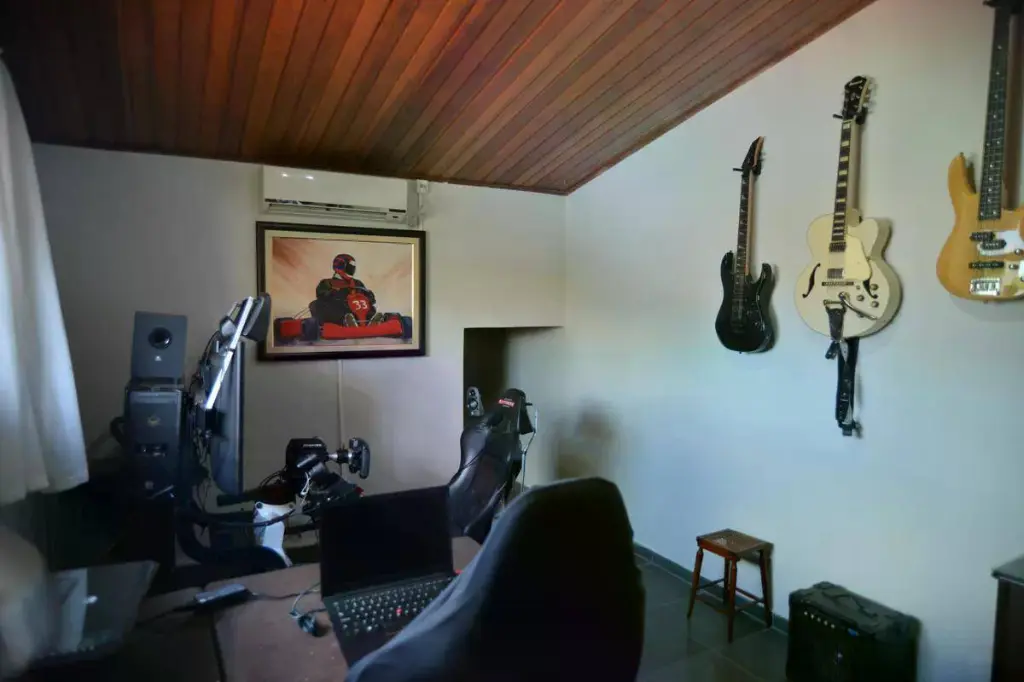 Área de Descanso: No segundo andar, você encontrará quatro quartos, sendo três deles suítes. A suíte master é um verdadeiro refúgio, com banheira de hidromassagem, armário planejado e uma varanda privativa. Há também uma suíte com varanda, outra suíte simples e um quarto adicional.