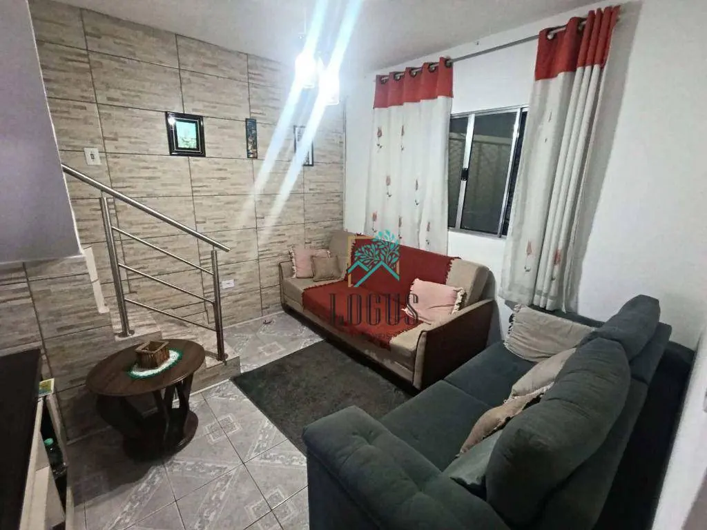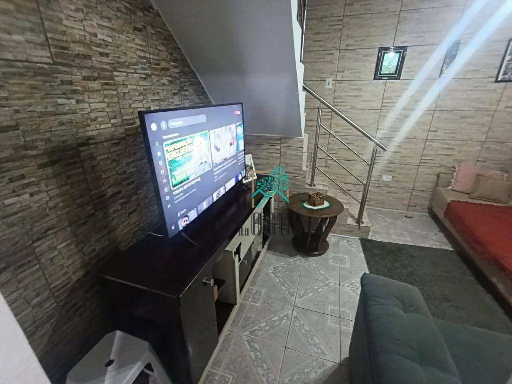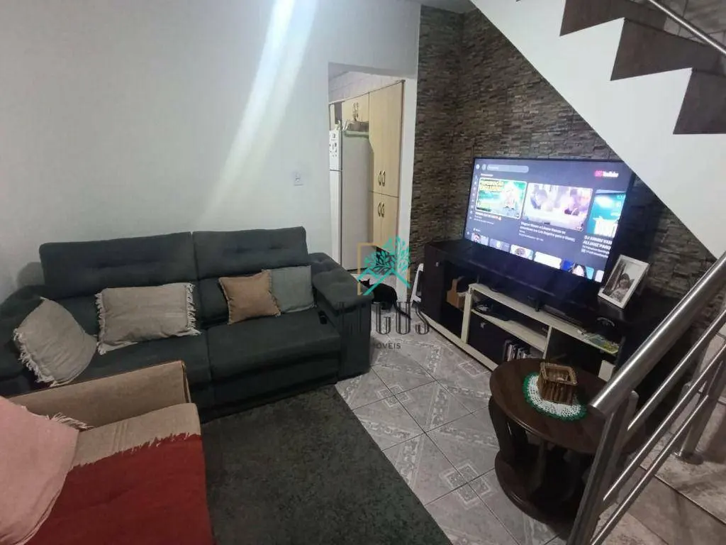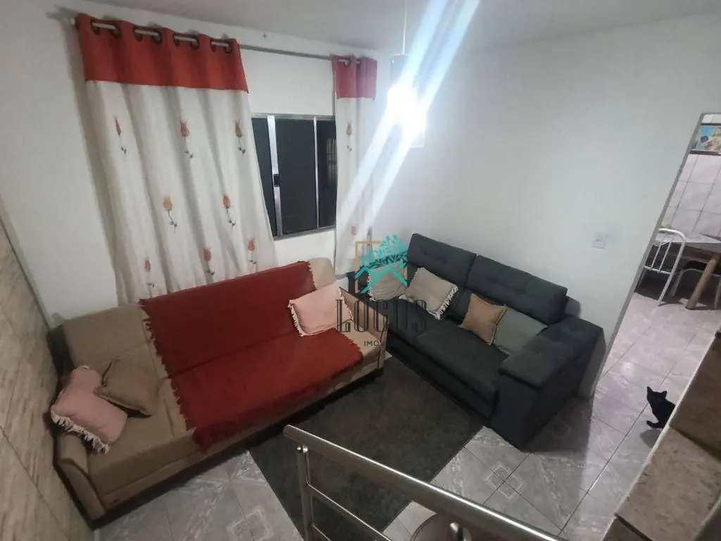 Sobrado bem distribuído com 100m² de área construída composto por 2 dormitórios sendo 1 suíte e sacada, 1 banheiro, sala, cozinha com armários, área de serviço com quintal.