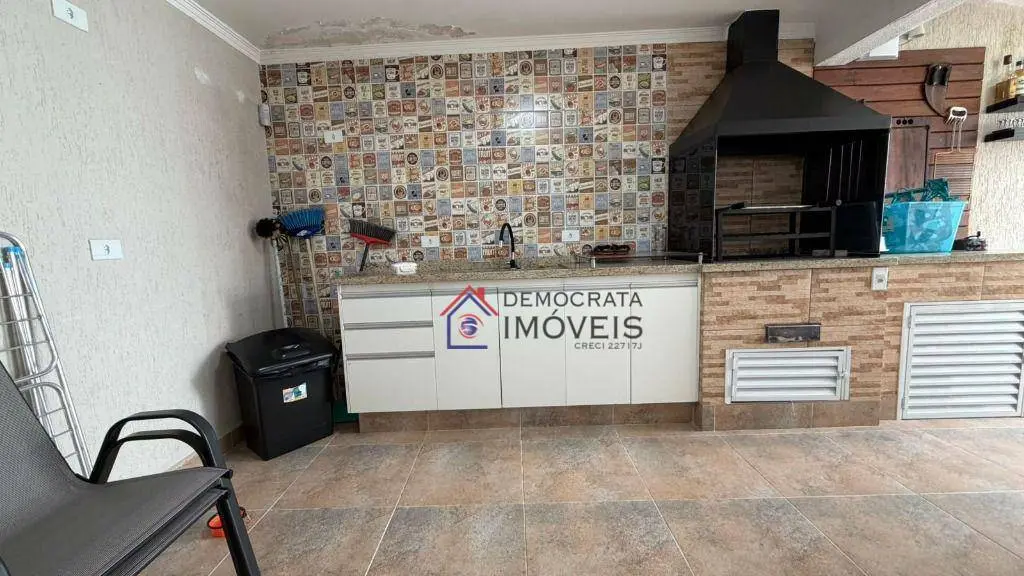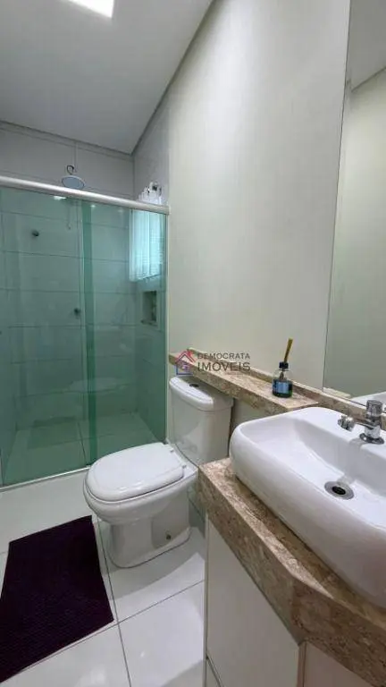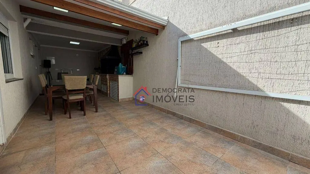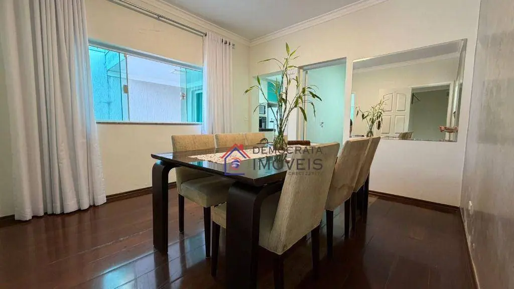 Sobrado com 320m² de área construída. Possui 3 dormitórios sendo 1 suíte com closet, banheiro social, lavabo, sala para 3 ambientes com piso em porcelanato, cozinha e área de serviço com planejados, área gourmet com churrasqueira, sistema de alarme, câmeras, cerca elétrica e 2 vagas de garagem.