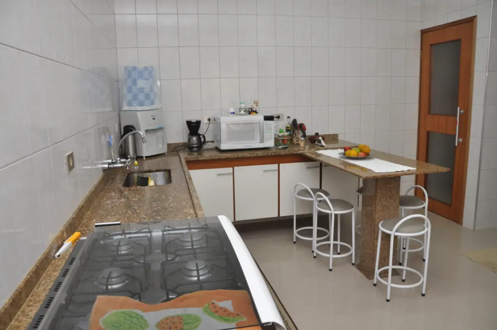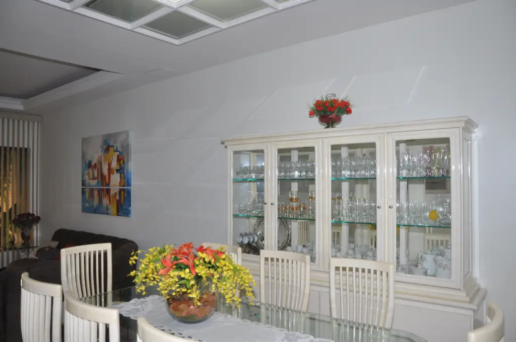 Distribuídos de forma funcional e elegante. Possui quatro suítes, sendo uma master com hidomassagem, amplas salas de estar e jantar, cozinha planejada com fogão, acabamento refinado em porcelanato e seis vagas de garagem. A área externa oferece espaço gourmet com churrasqueira, quintal com jardim e uma edícula com entrada lateral independente que abriga uma quarta suíte completa - com dormitório, sala e banheiro - perfeita para hóspedes, escritório privativo ou uso multifuncional. O imóvel é mobiliado e equipado com ar-condicionado, aquecedor central e aquecimento a gás, armários planejados na cozinha, dormitórios e banheiros, além de despensa, escritório, lavabo, área de serviço com banheiro, interfone, portão eletrônico, internet instalada e água individualizada.