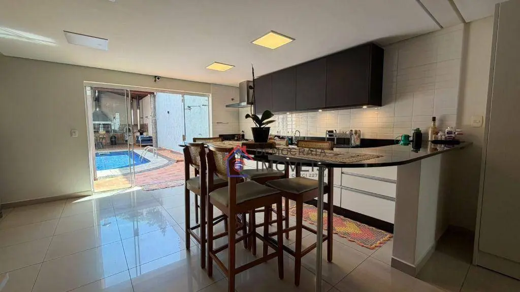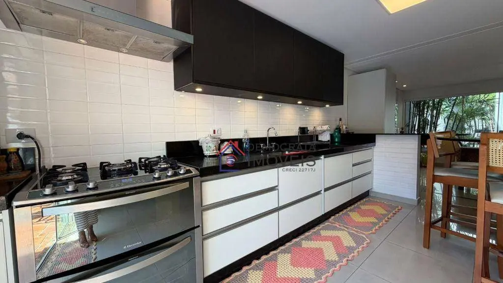 Possui 3 suítes, todas com closet, sendo duas com hidromassagem, além de uma suíte master com 80m². Dispõe de uma ampla sala de estar, cozinha planejada, área de serviço e um excelente espaço gourmet com churrasqueira, piscina climatizada e lavabo.