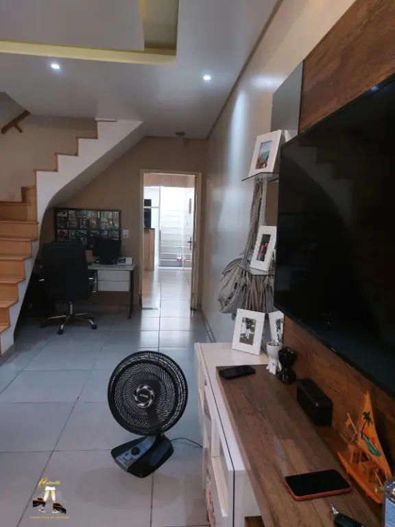 Sobrado possui 2 dormito´rios com ar condicionado, um banheiro social e um lavabo,