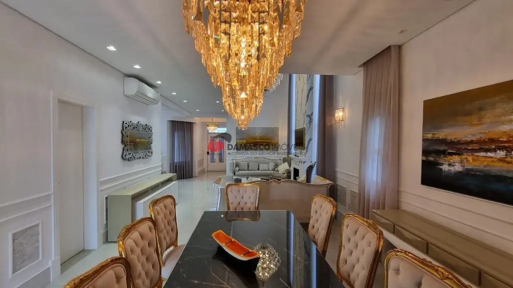 Ao adentrar esta propriedade, você será recebido por um design elegante e funcional, com ambientes bem distribuídos e projetados para proporcionar o máximo em conforto e conveniência. A presença de três salas, uma cozinha gourmet, uma copa, um escritório com armários, uma despensa e uma lavanderia demonstra o cuidado com os detalhes e a atenção aos anseios de um estilo de vida sofisticado.