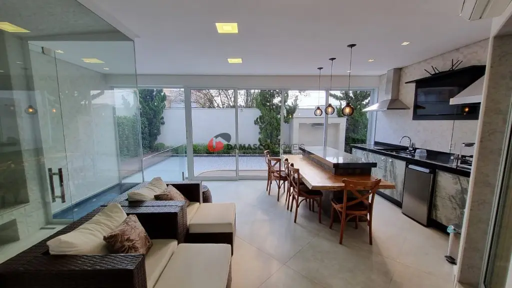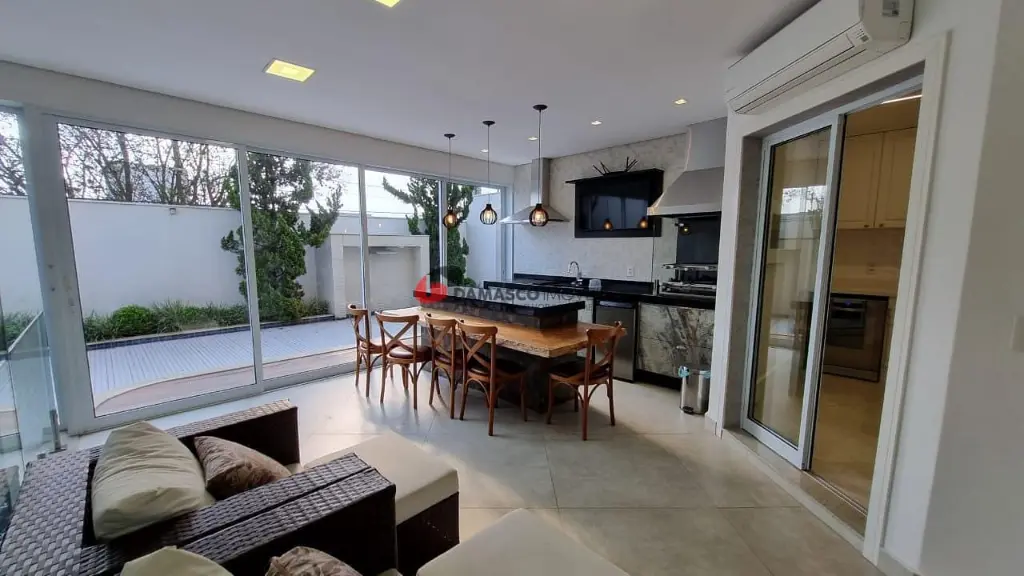 Equipado com comodidades excepcionais, este sobrado conta com churrasqueira, sauna, closet, aquecimento solar, armários embutidos, jardim de inverno, lareira, piscina, elevador privativo, taco de madeira, porcelanato e muito mais. Esses atributos garantem uma experiência de moradia única, onde o conforto e a elegância se unem harmoniosamente.
