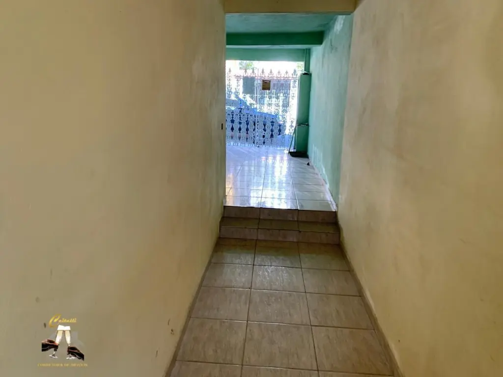 Sobrado possui em torno de 200mts de construc¸a~o, possui 3 dormito´rios amplos com boa iluminac¸a~o, 2 banheiros, sala, cozinha ampla, quintal lateral, sacada na frente com acesso pelo dormito´rios, garagem coberta para 2 carros.