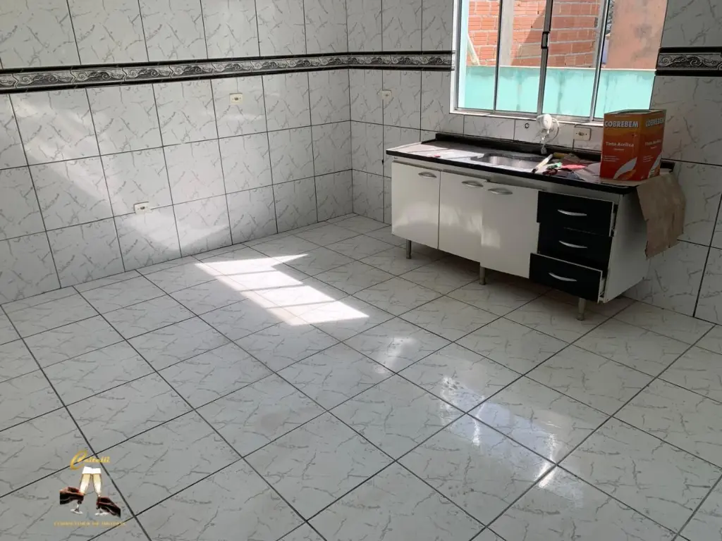 A casa esta´ toda em piso cera^mica.