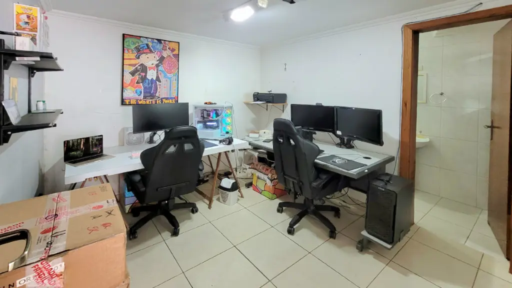 O imóvel conta com 3 dormitórios, todos suítes, sendo 2 suítes no pavimento superior e 1 suíte no térreo, ideal para escritório, hóspedes ou até mesmo moradia independente.
