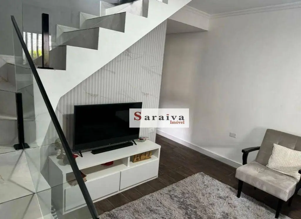 Lindo sobrado composto por 2 dormitórios, 1 banheiro, 1 lavabo, sala, cozinha em conceito aberto integrada com sala de jantar, varanda, quintal externo com mais um cômodo com quartinho e banheiro que possibilita fazer 1 suíte e 2 vagas de garagem cobertas (garagem para 2 veículos pequenos ou 1 grande).