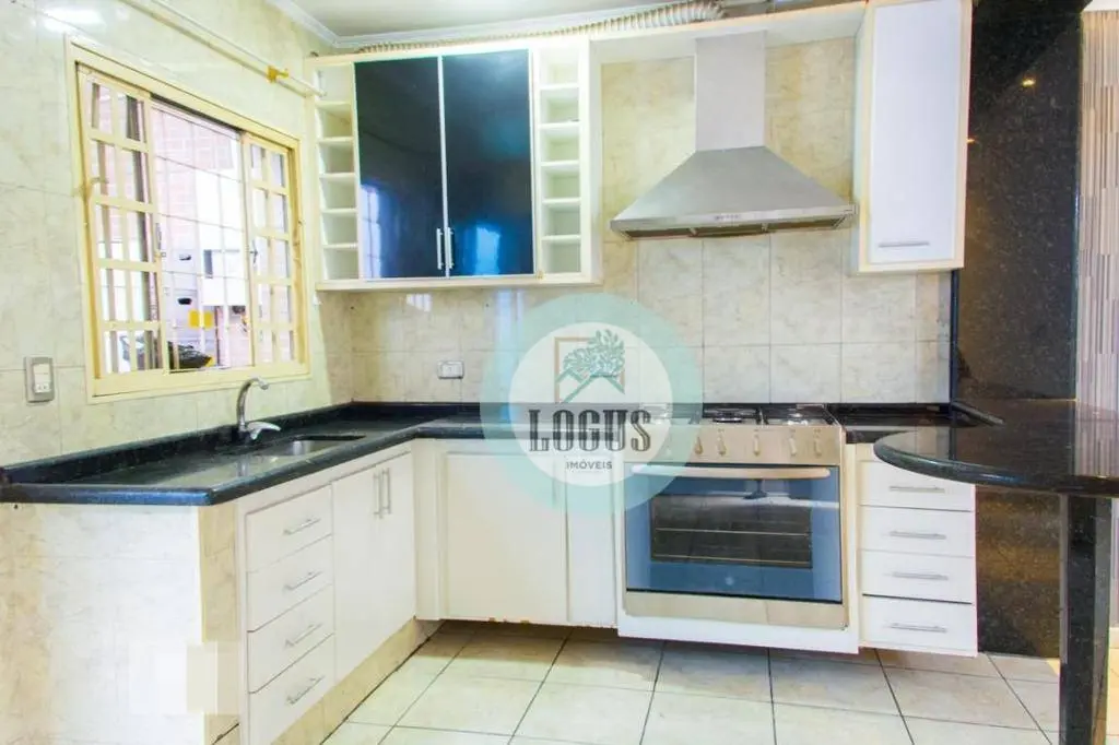 Sobrado bem distribuída com 210m² composto por 3 dormitórios sendo 1 suíte com sacadas, 1 WC, o banheiro social com gabinete e Box de vidro, sala de jantar e sala de estar, cozinha americana com armários planejados, área de serviço com quintal e 2 vagas de garagem.
