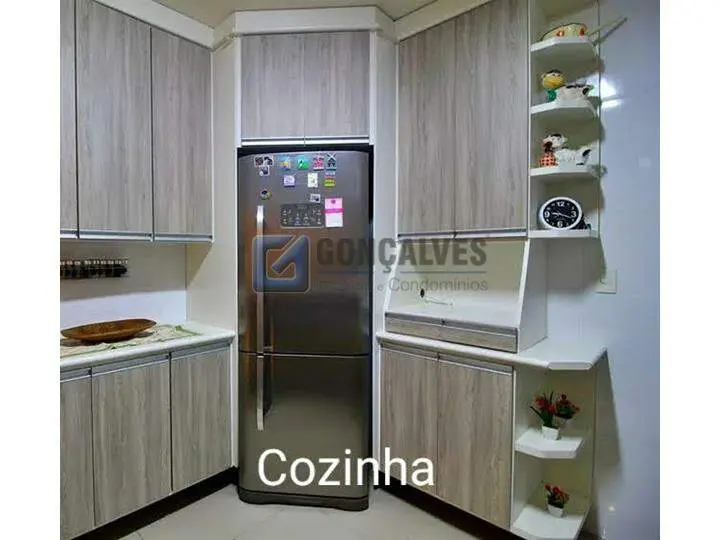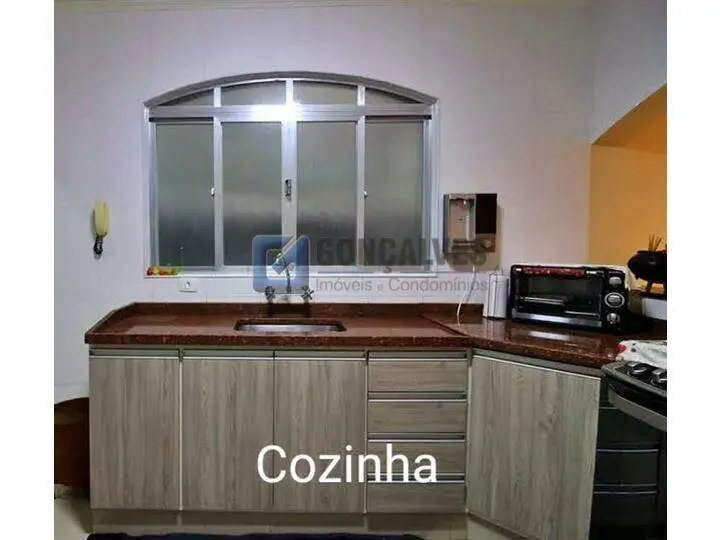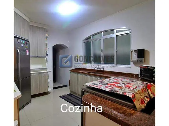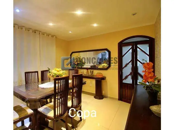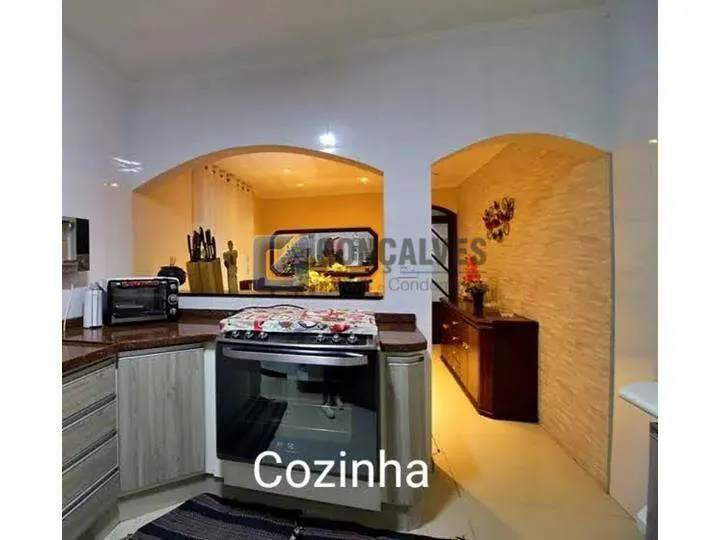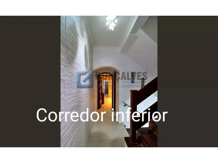 Sobrado de venda em Santo André (Jardim Las Vegas) com 4 quartos, sendo 1 suíte, 2 banheiros e 1 sala. Área interna de 171 m² em acabamento de madeira, área externa de 125 m² e terreno de 125 m². Possui área de serviço, armários na cozinha e quartos, portão eletrônico e 3 vagas de garagem.