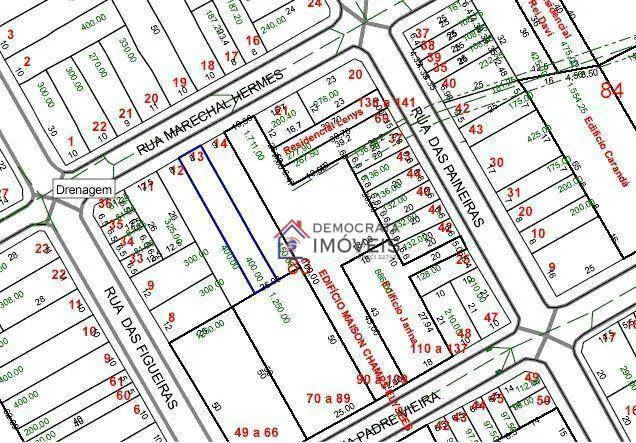 Terreno plano com 400 m² de área total, sendo 8 metros de frente e 50 metros de profundidade. No local existem duas casas antigas, porém bem conservadas, que juntas somam quatro dormitórios e oferecem nove vagas de garagem.